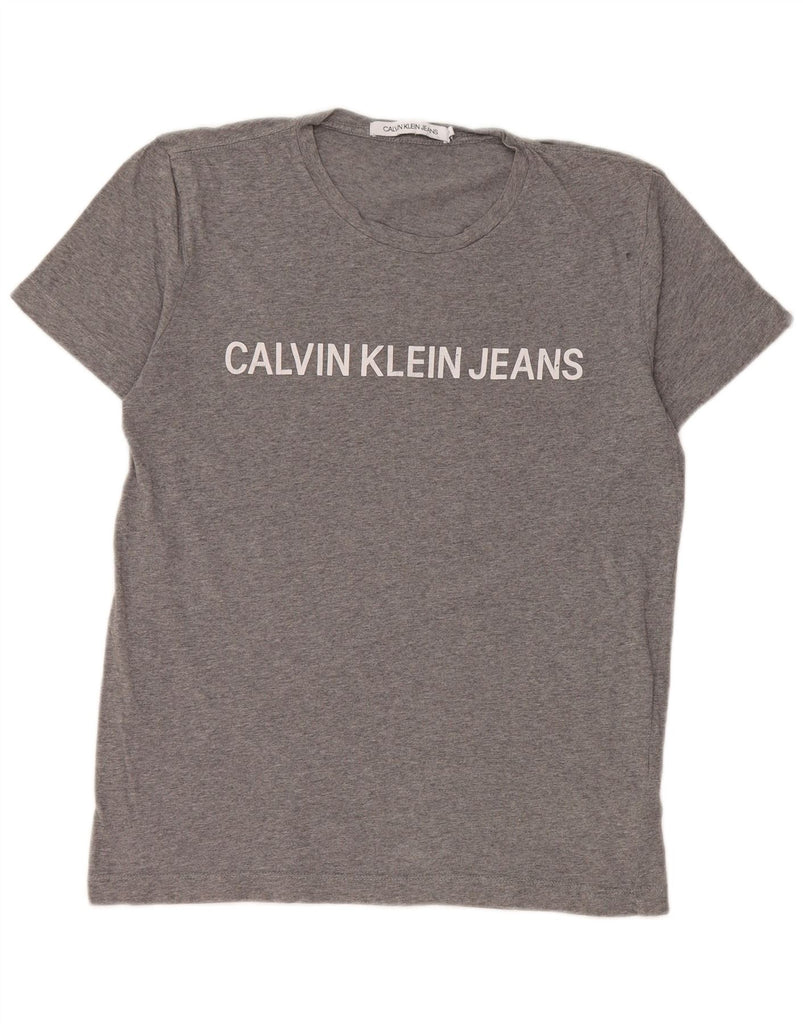CALVIN KLEIN JEANS T-shirt grafica da donna Top UK 14 Cotone grigio medio