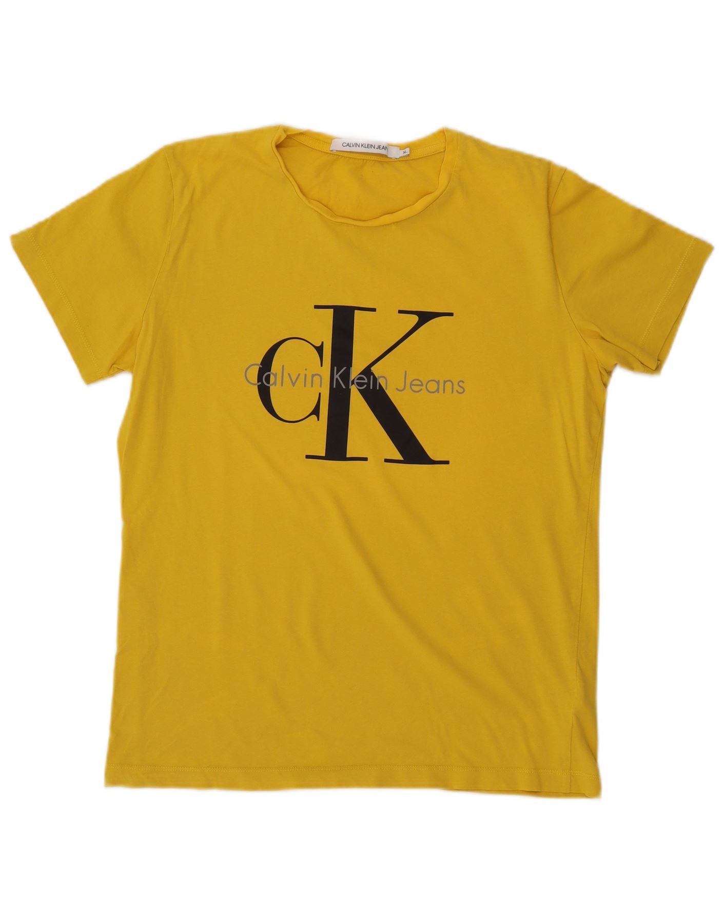 CALVIN KLEIN JEANS T-shirt grafica da donna Top UK 18 XL Cotone giallo