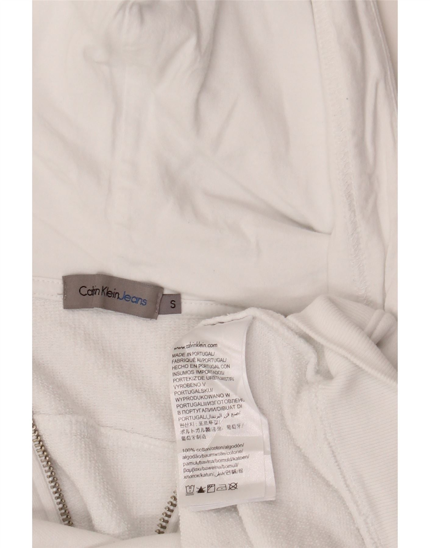 CALVIN KLEIN JEANS Felpa con cappuccio e zip grafica da donna UK 10 Small Bianca