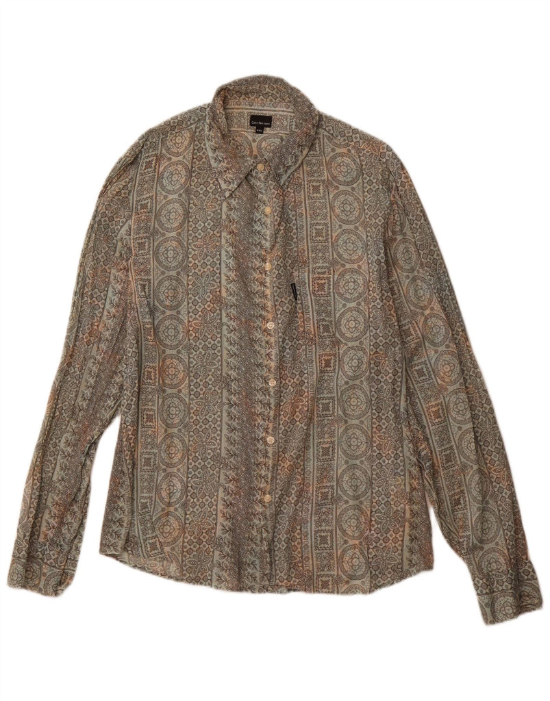 CALVIN KLEIN JEANS Camicia da donna UK 20 2XL Cotone floreale grigio