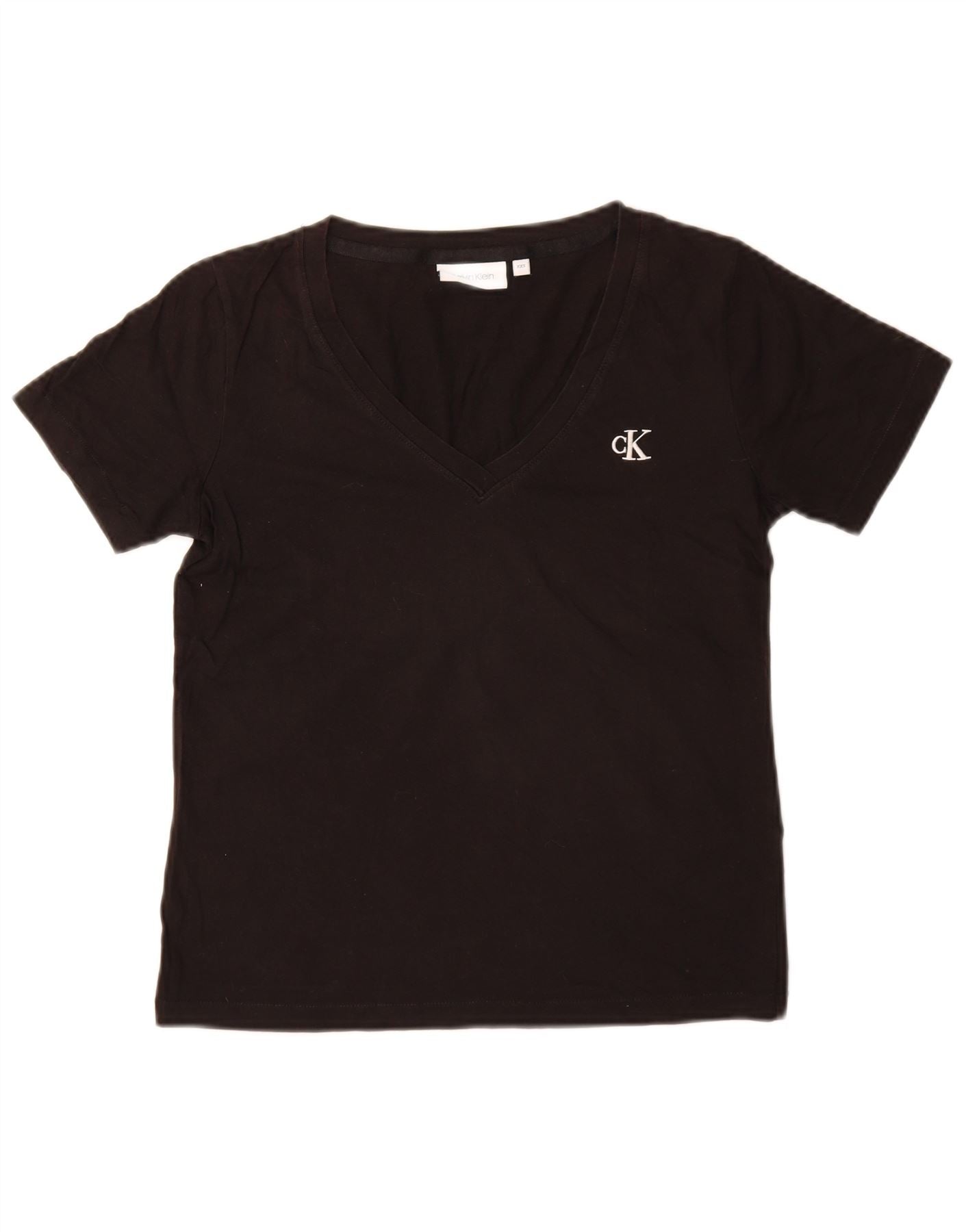 CALVIN KLEIN JEANS T-shirt da donna Top UK 2 XS cotone nero