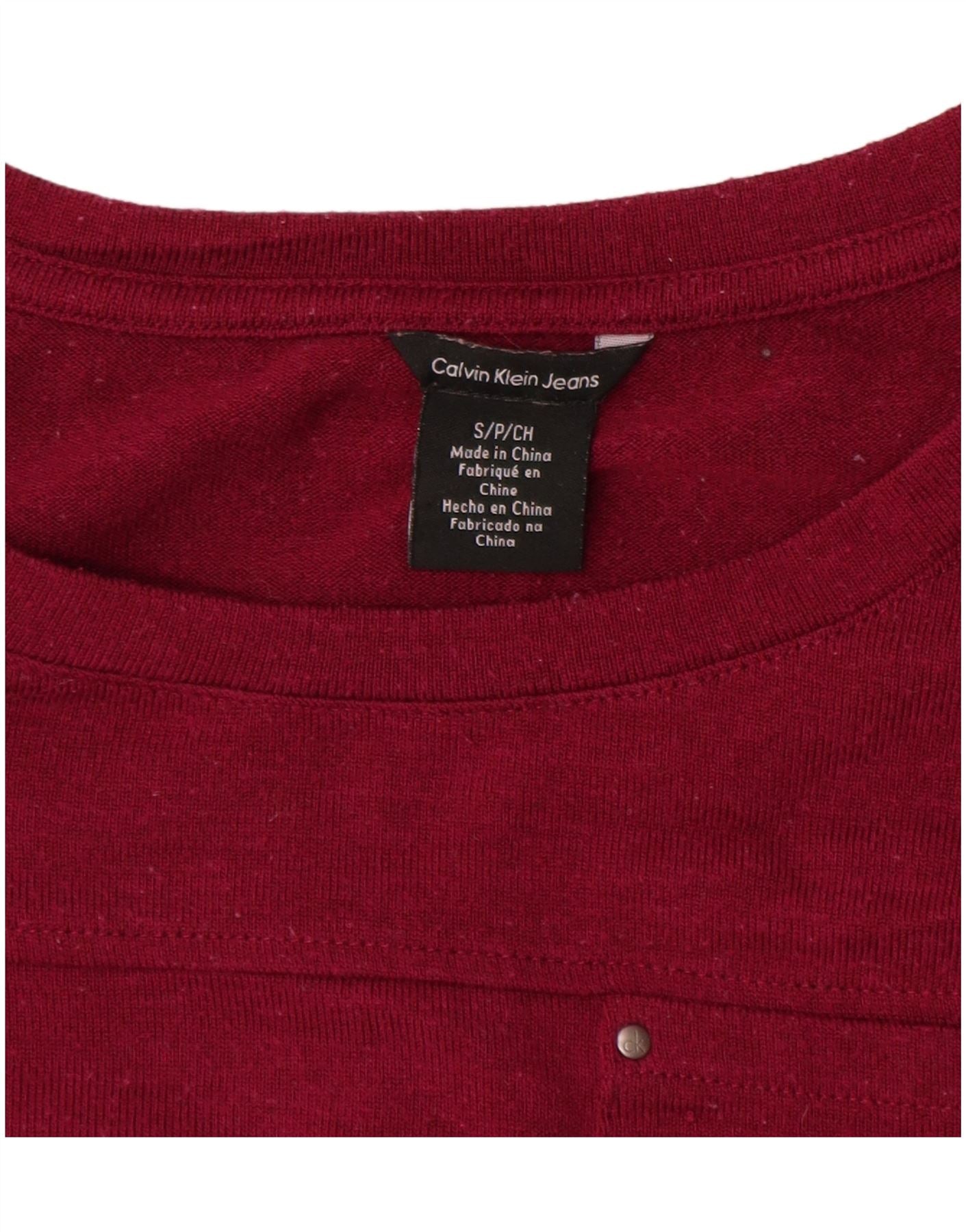 Home > Da donna > Abbigliamento Depop > CALVIN KLEIN JEANS Top da donna manica 3/4 UK 10 piccolo bordeaux poliestere