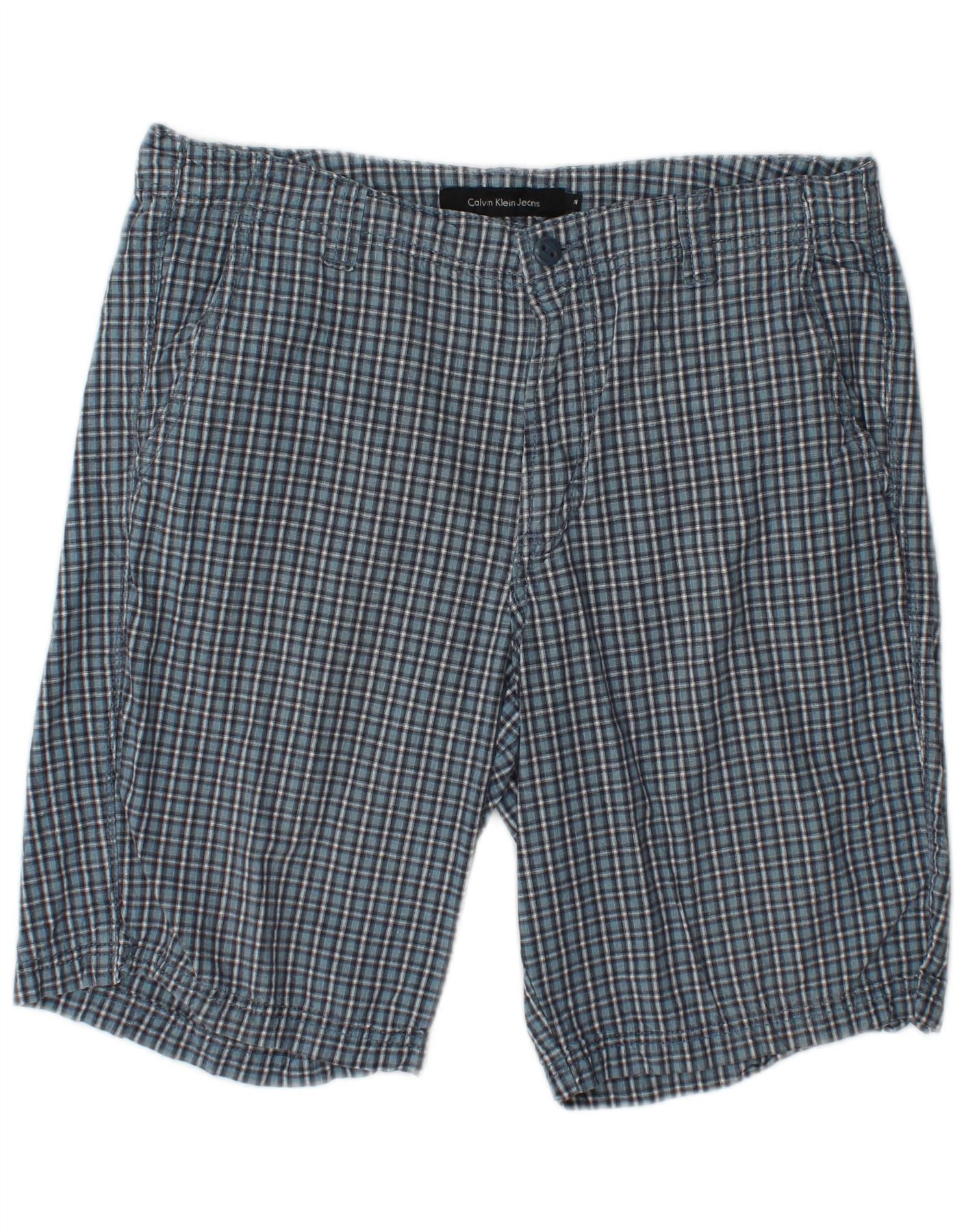 CALVIN KLEIN Pantaloncini chino da uomo W34 cotone a quadri grandi blu