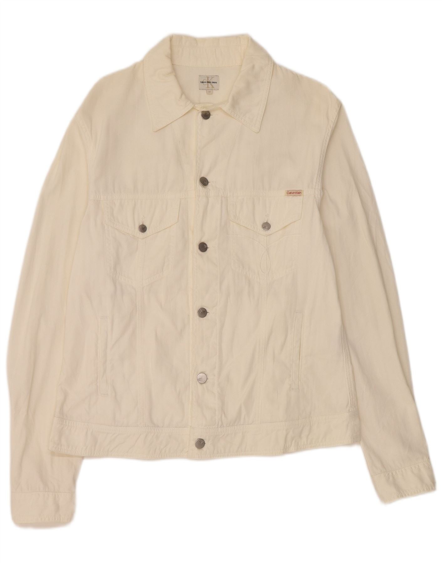 CALVIN KLEIN Giacca di jeans da uomo UK 38 Cotone bianco medio