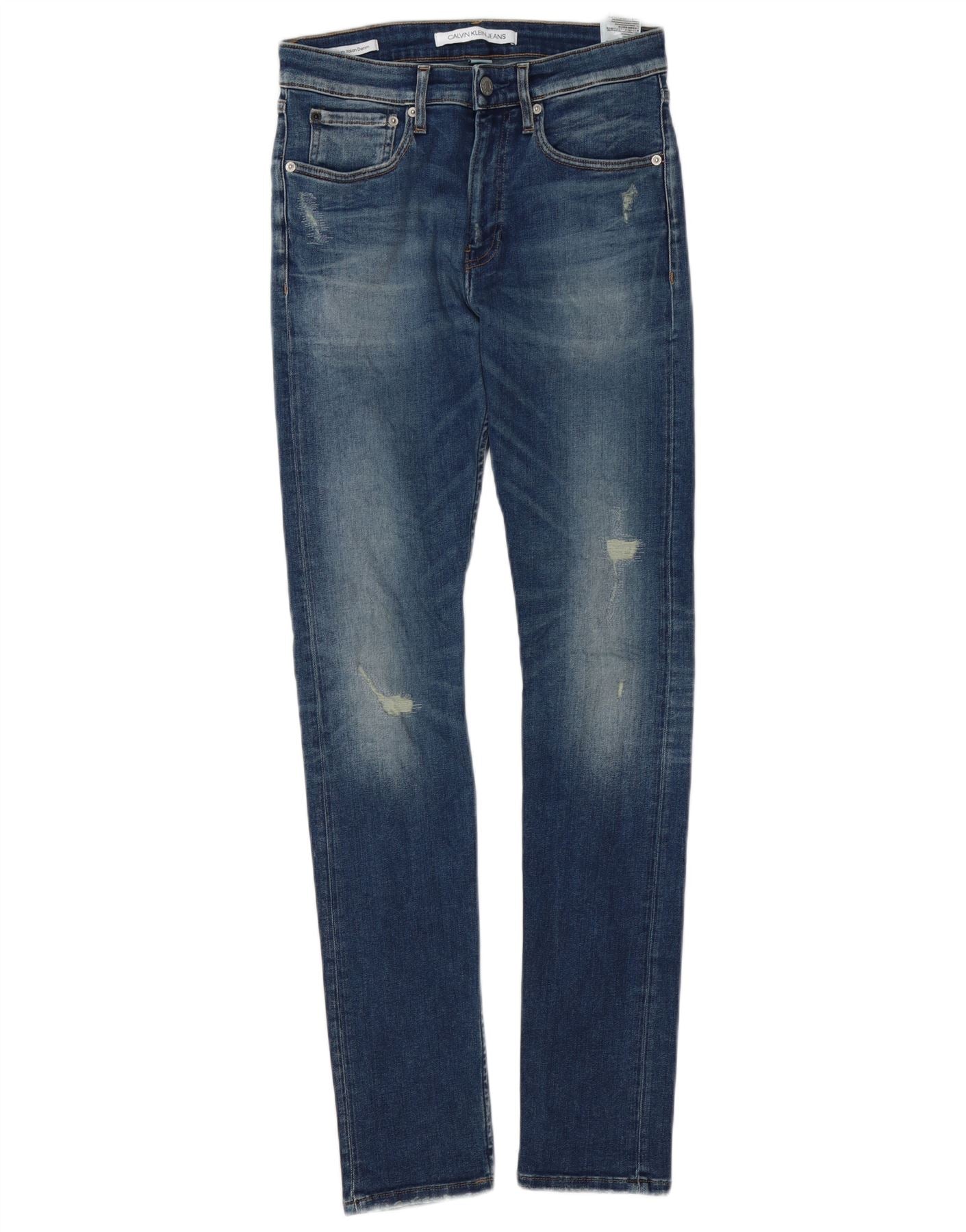 CALVIN KLEIN Jeans skinny effetto consumato da uomo W28 L32 cotone blu