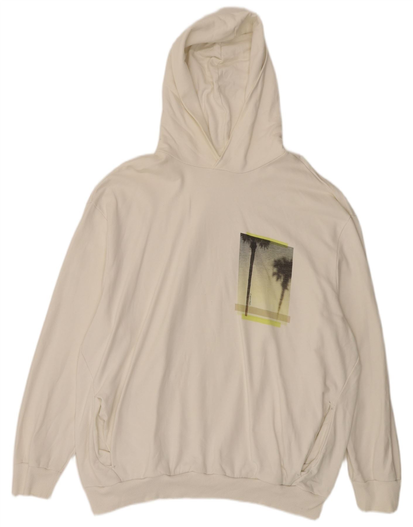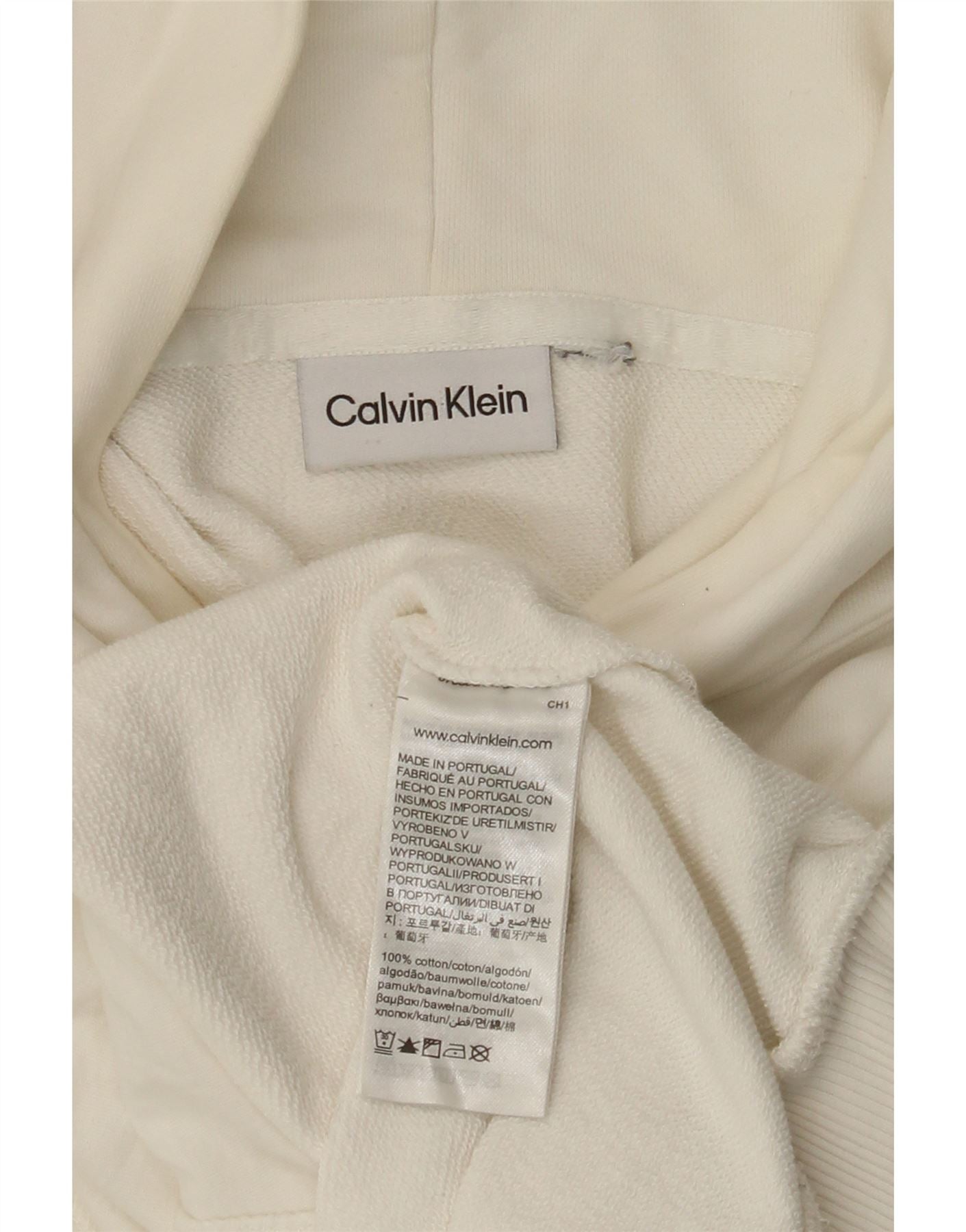 Maglione con cappuccio grafico da uomo Calvin Klein 3XL in cotone bianco sporco
