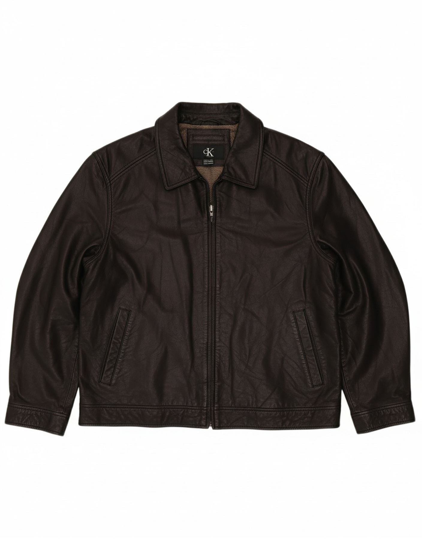 CALVIN KLEIN Mens Leather Jacket UK 42 XL Black Leather