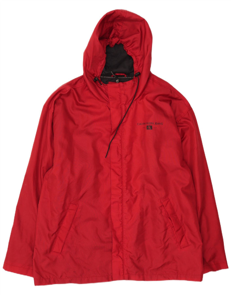 CALVIN KLEIN Mens Loose Fit Hooded Rain Jacket UK 44 2XL Burgundy Nylon