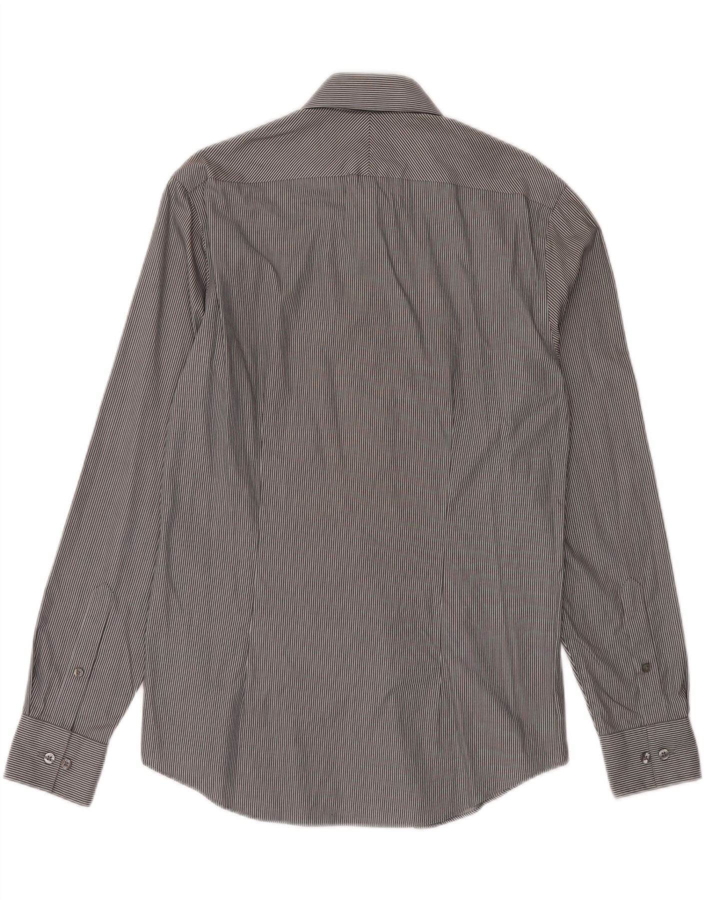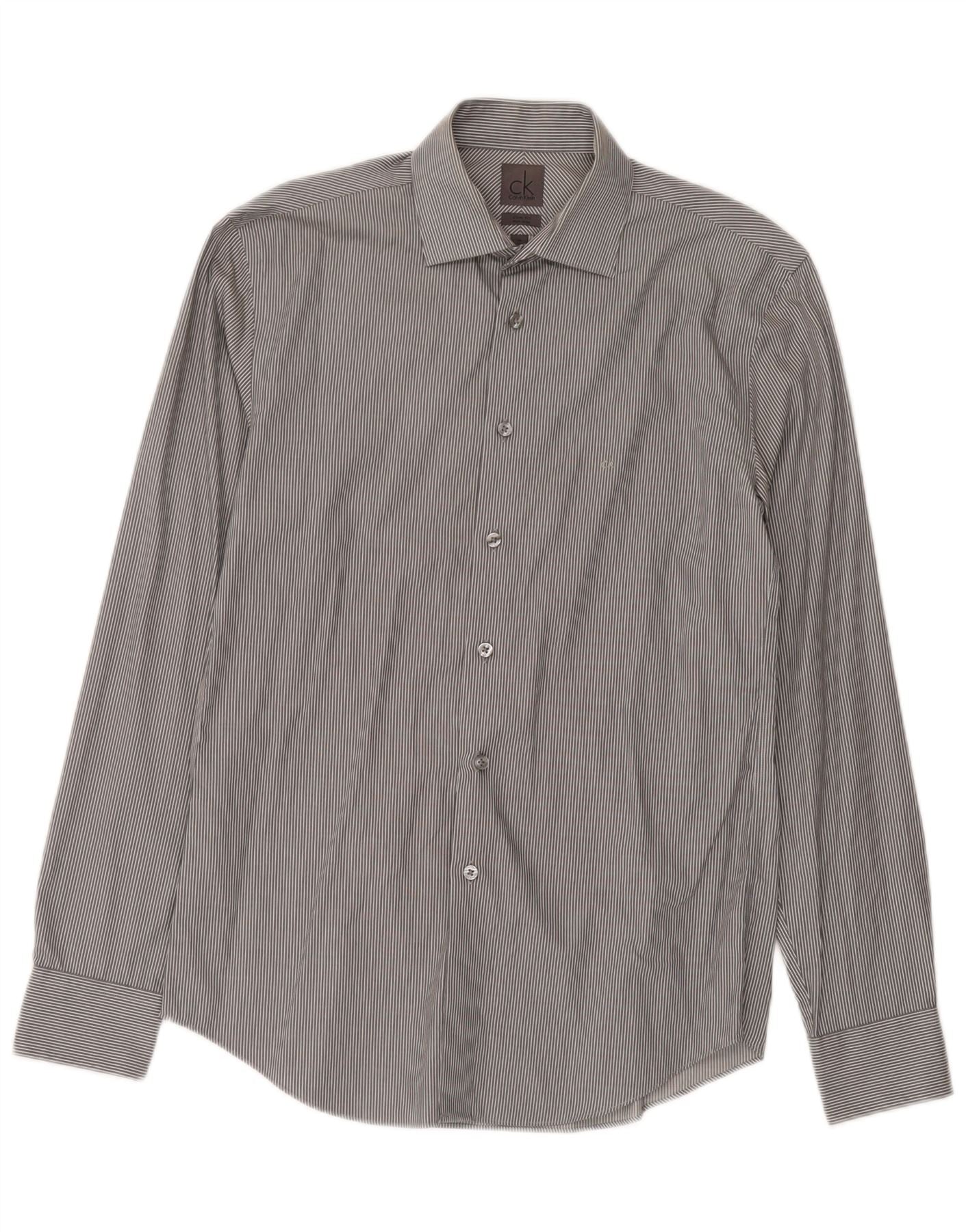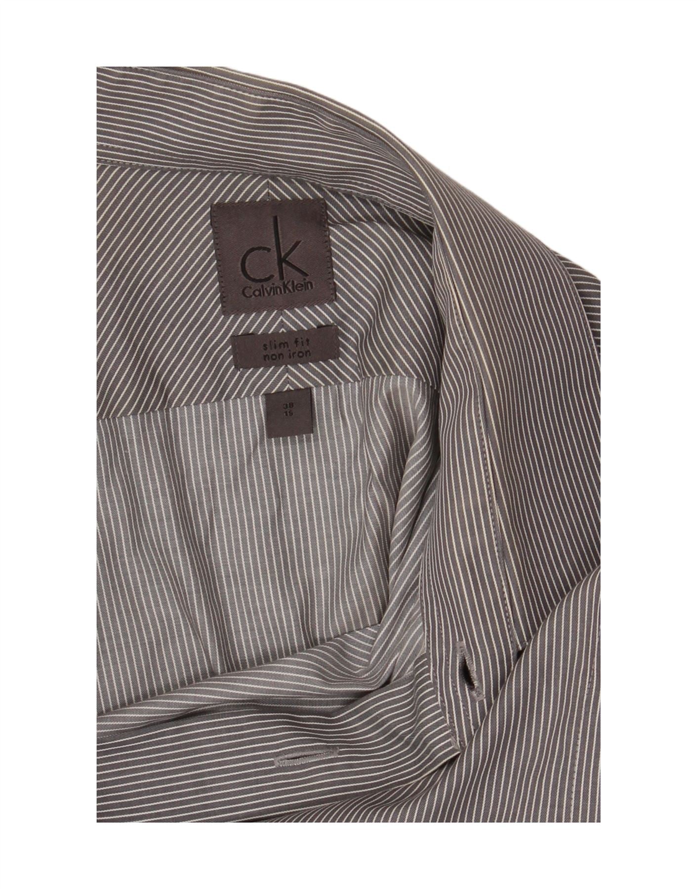 CALVIN KLEIN Mens Slim Fit Shirt Size 38 15 Medium Grey Pinstripe Cotton
