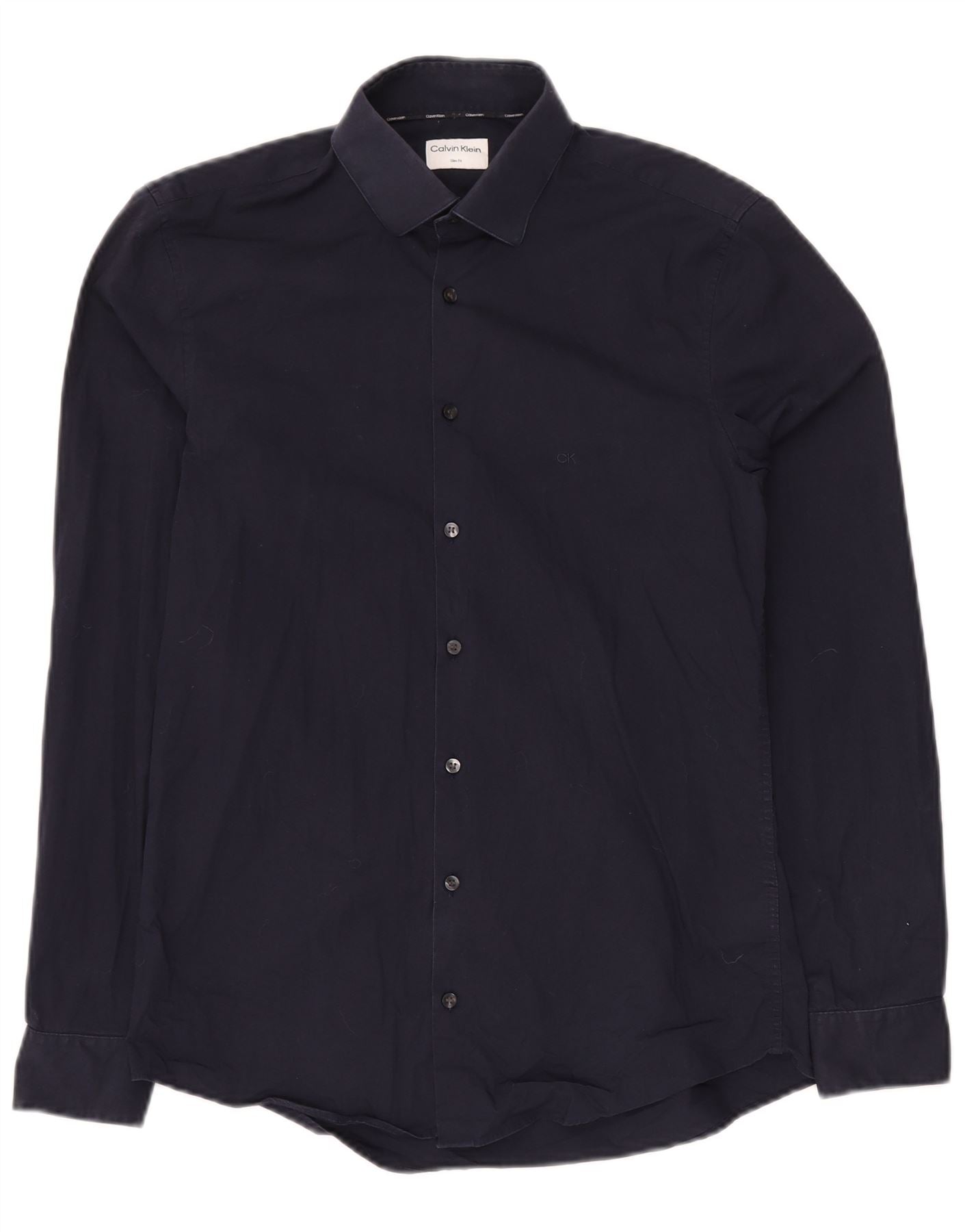 CALVIN KLEIN Camicia slim fit da uomo taglia 39 media cotone blu navy