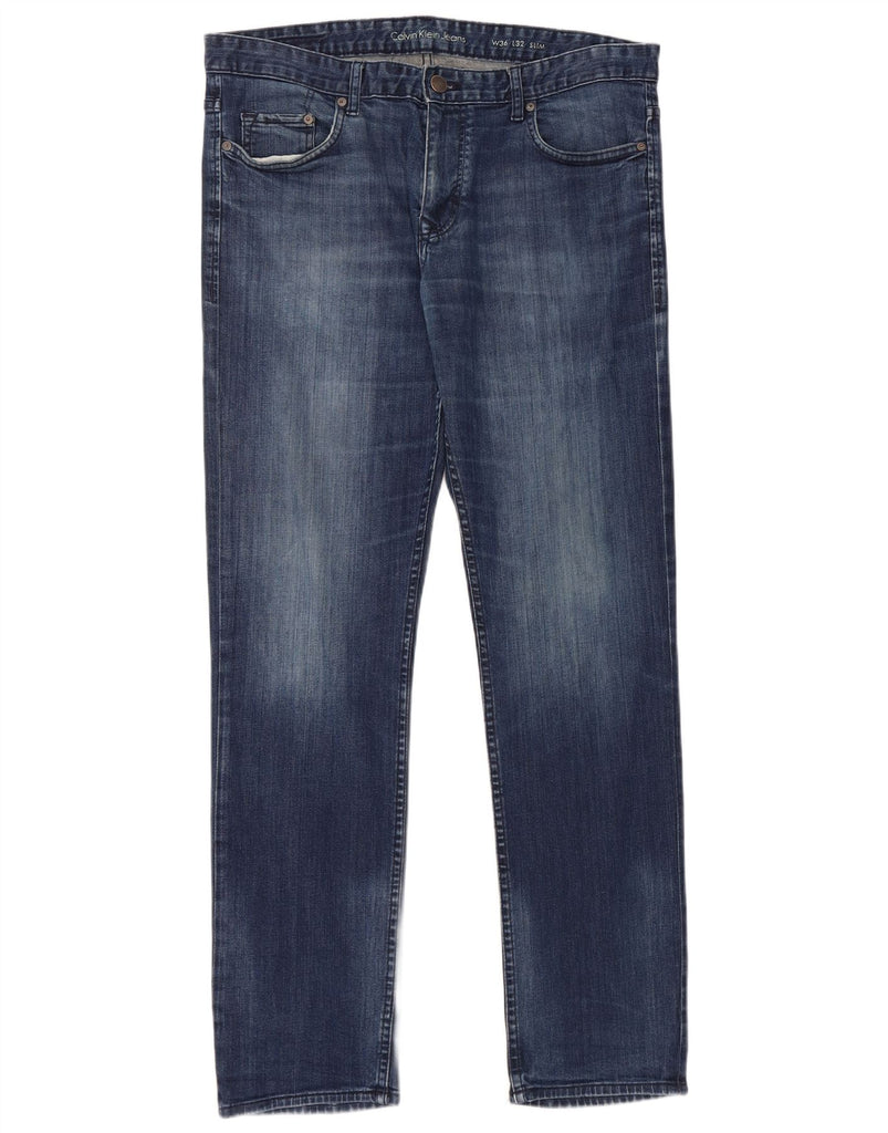 - AI Description: These Calvin Klein womens slim jeans are crafted from blue stretch denim. They feature a mid rise waist and a zip fly closure. The slim fit design tapers neatly through the leg. Classic five pocket styling adds practicality. A subtle logo detail completes the look. This pair offers both comfort and a sleek, modern silhouette.
