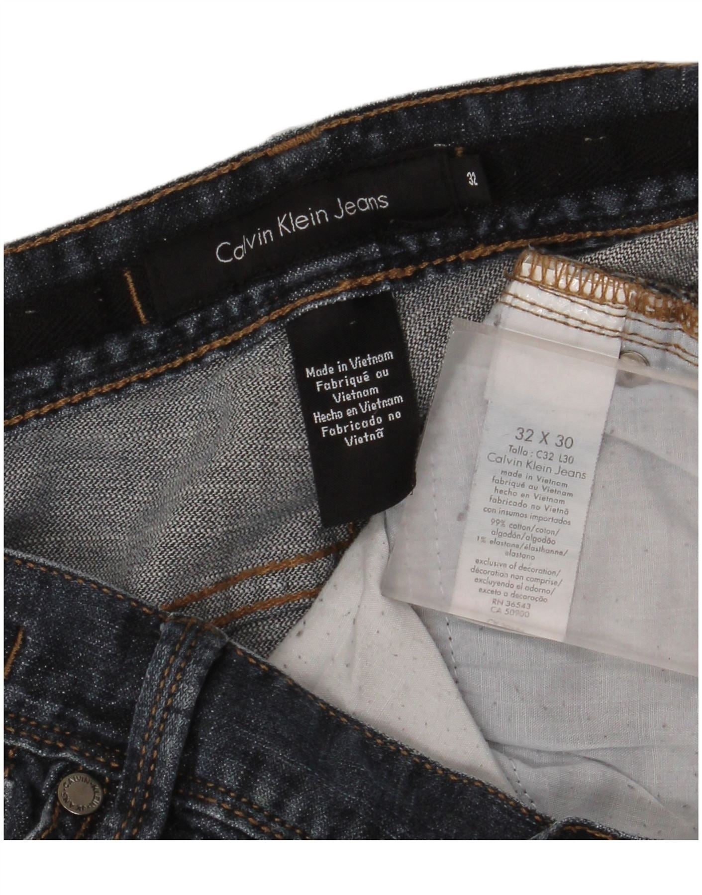 Jeans dritti da uomo Calvin Klein W32 L26 cotone blu navy