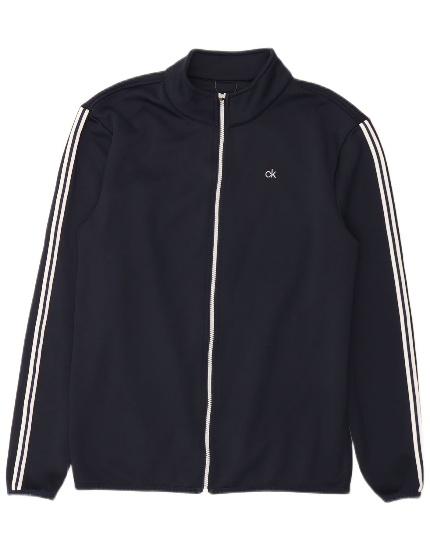 Giacca da tuta da uomo Calvin Klein grande in poliestere a righe blu navy