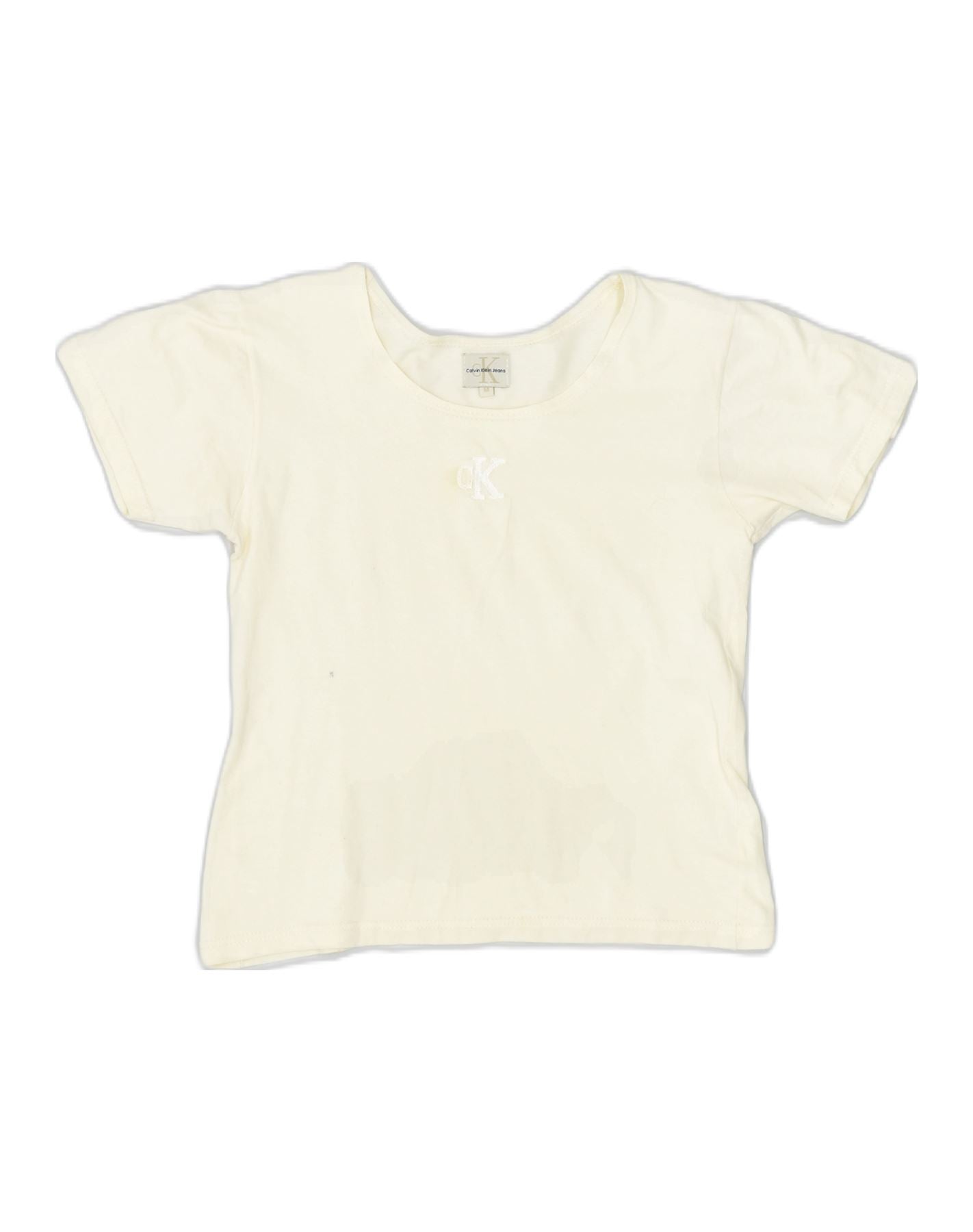 CALVIN KLEIN T-shirt grafica da donna Top UK 12 medio bianco sporco