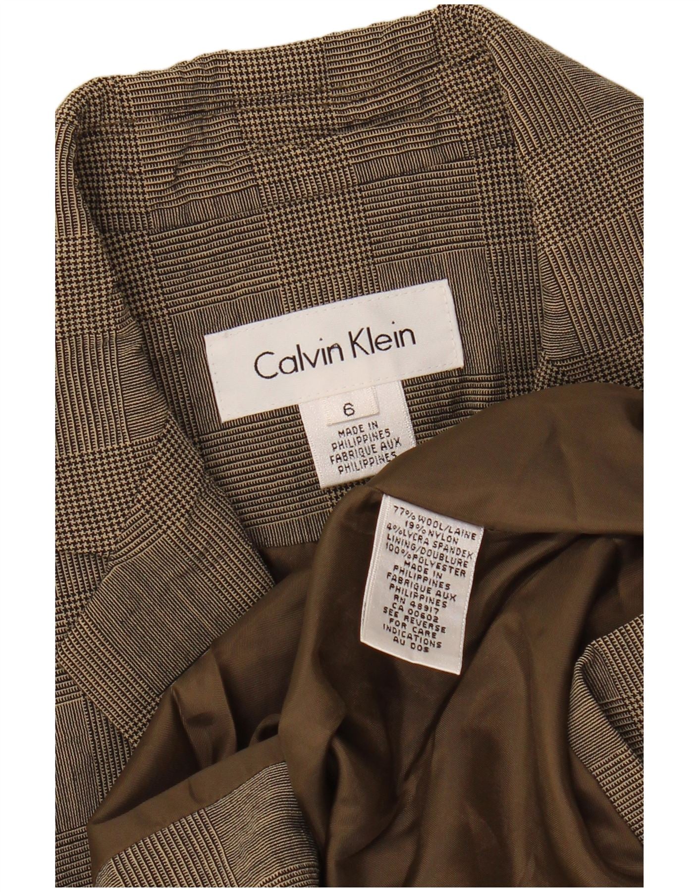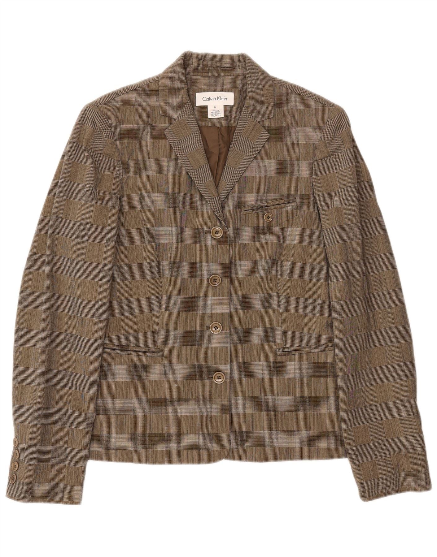 CALVIN KLEIN Womens 4 Button Blazer Jacket US 6 Medium Grey Houndstooth