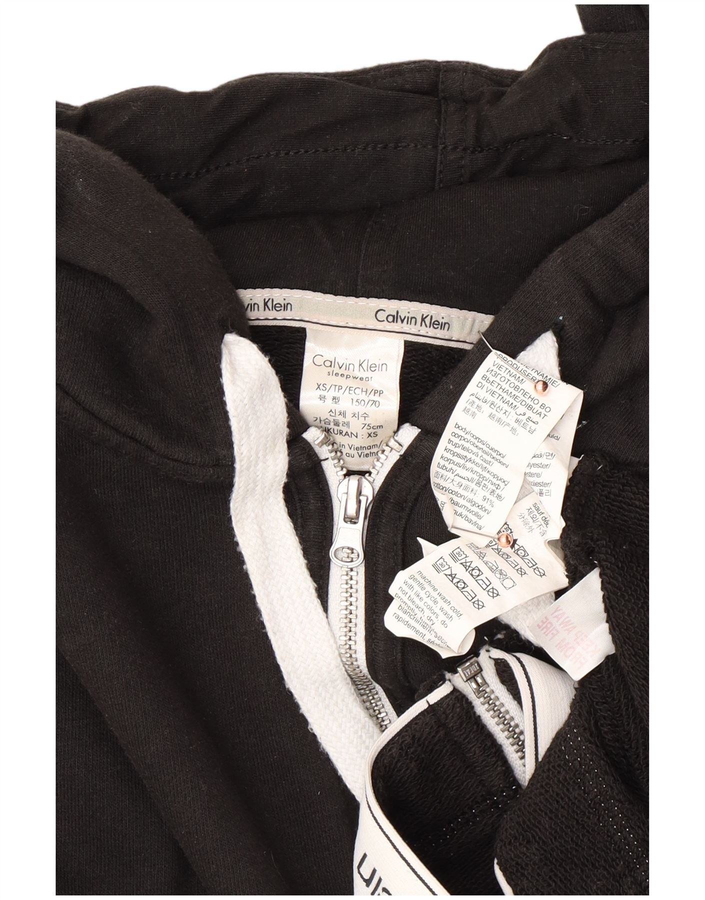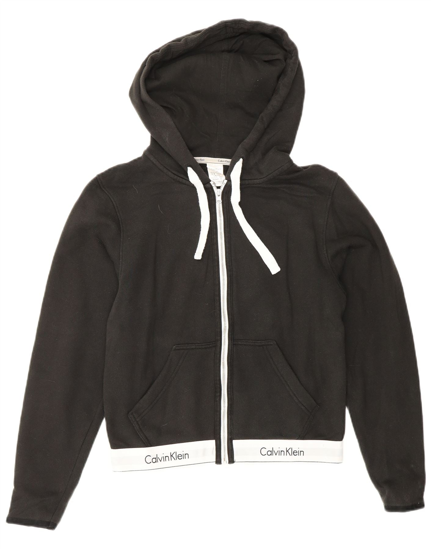CALVIN KLEIN Felpa con cappuccio e zip corta da donna UK 6 XS Nero Colourblock