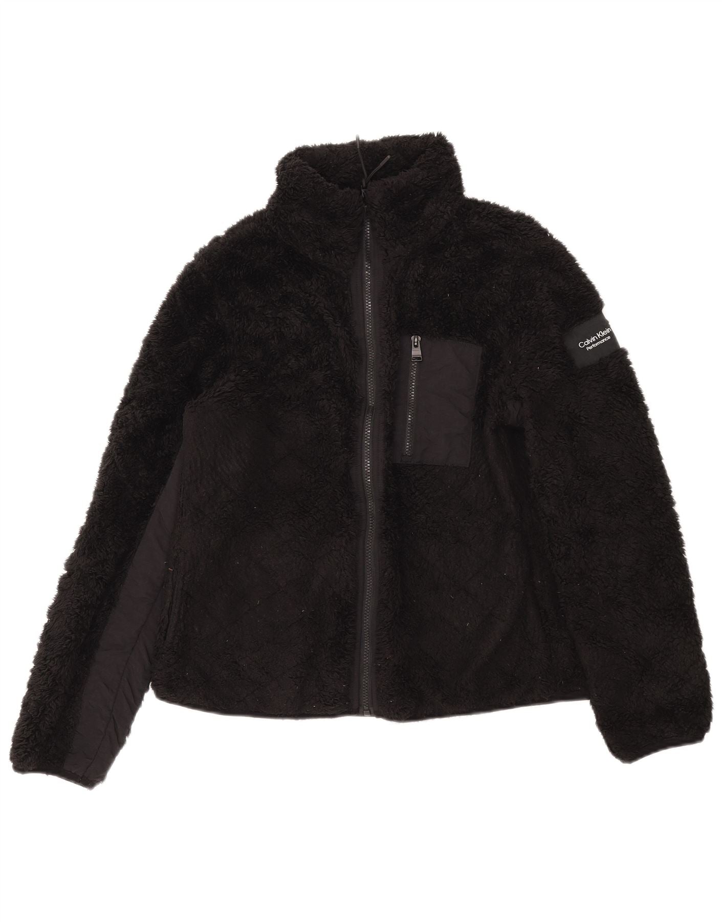CALVIN KLEIN Giacca in pile da donna UK 16 Large Nero Poliestere