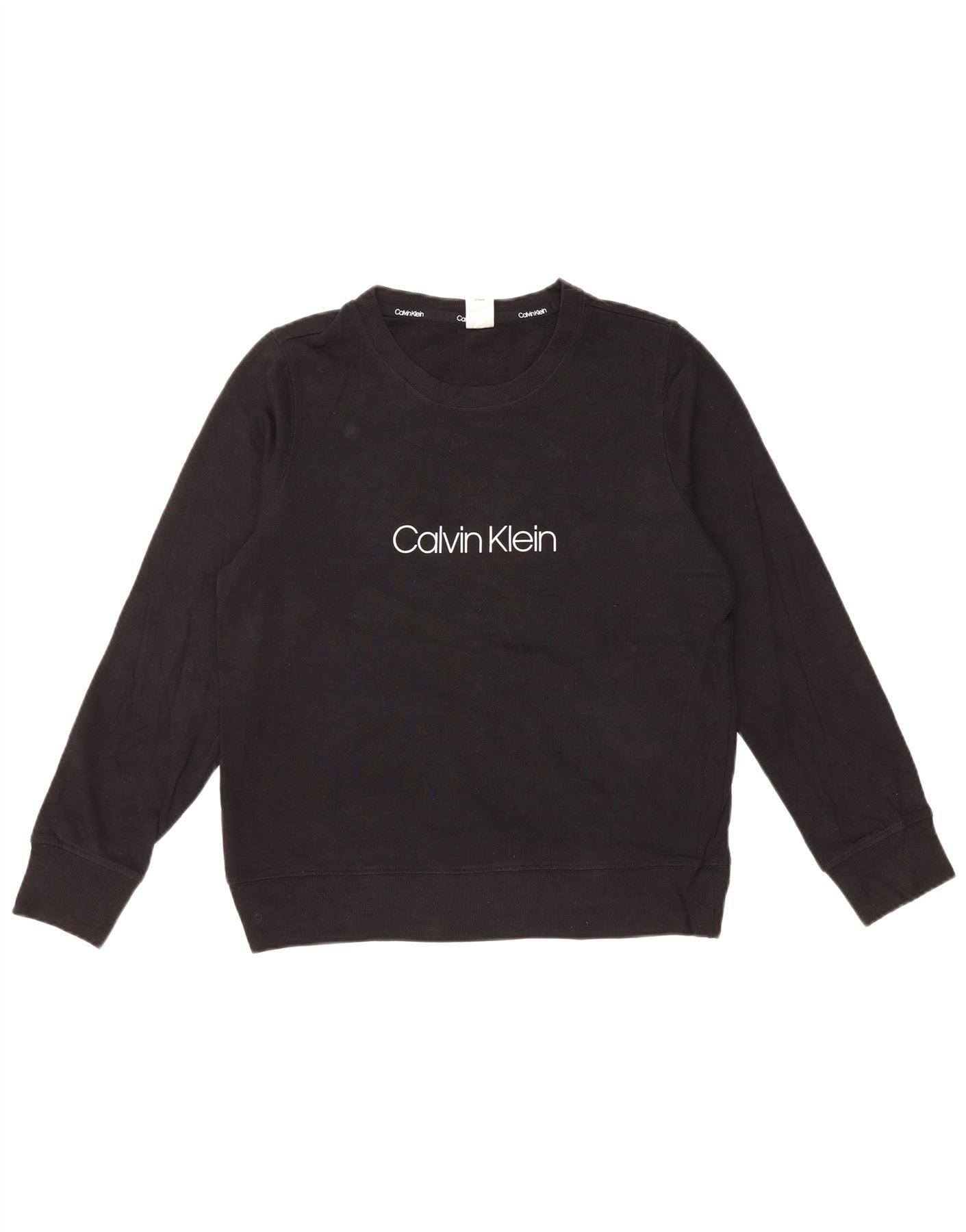 CALVIN KLEIN Felpa con grafica da donna Maglione UK 14 Medio Nero Cotone