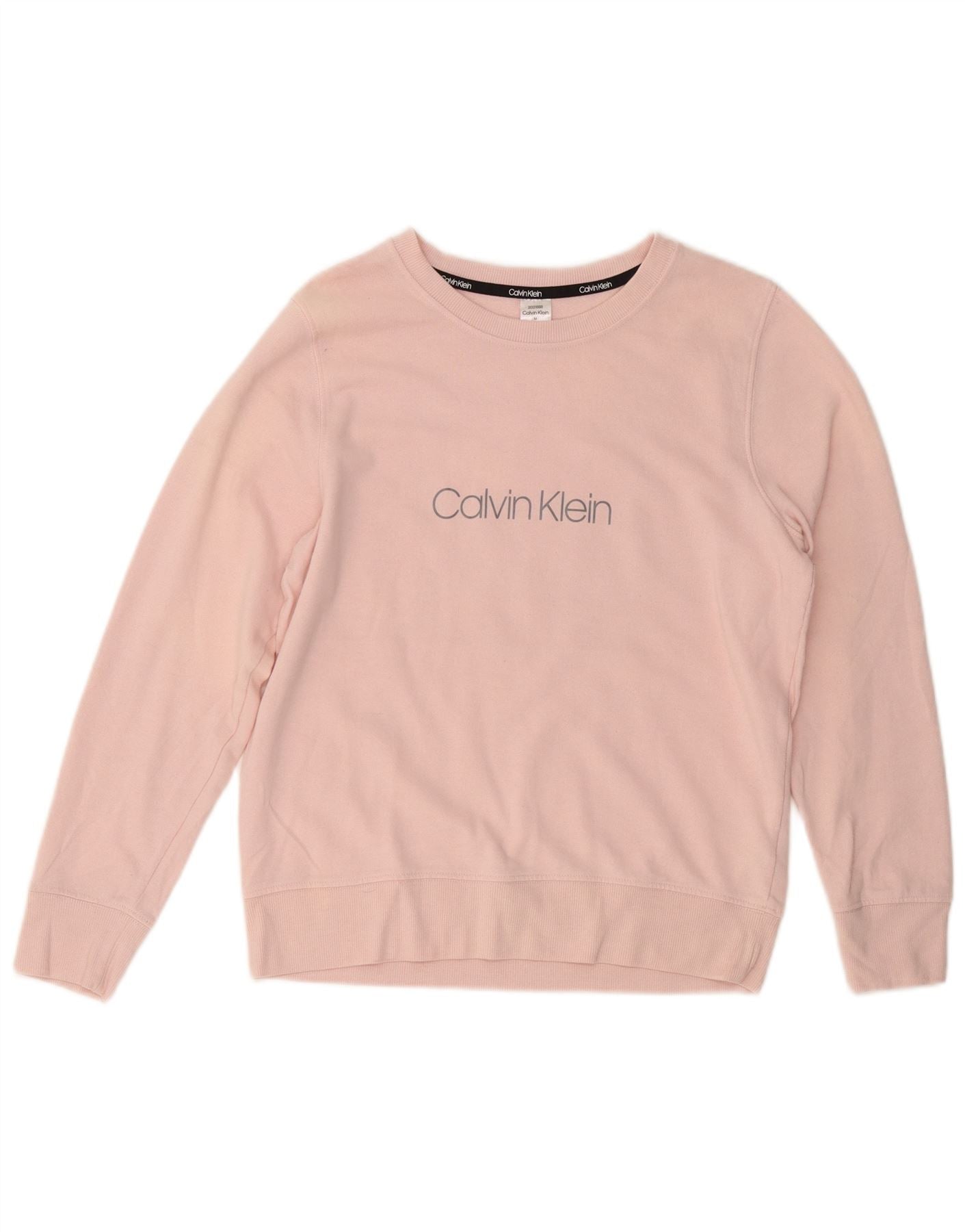 CALVIN KLEIN Felpa con grafica da donna Maglione UK 14 Cotone rosa medio