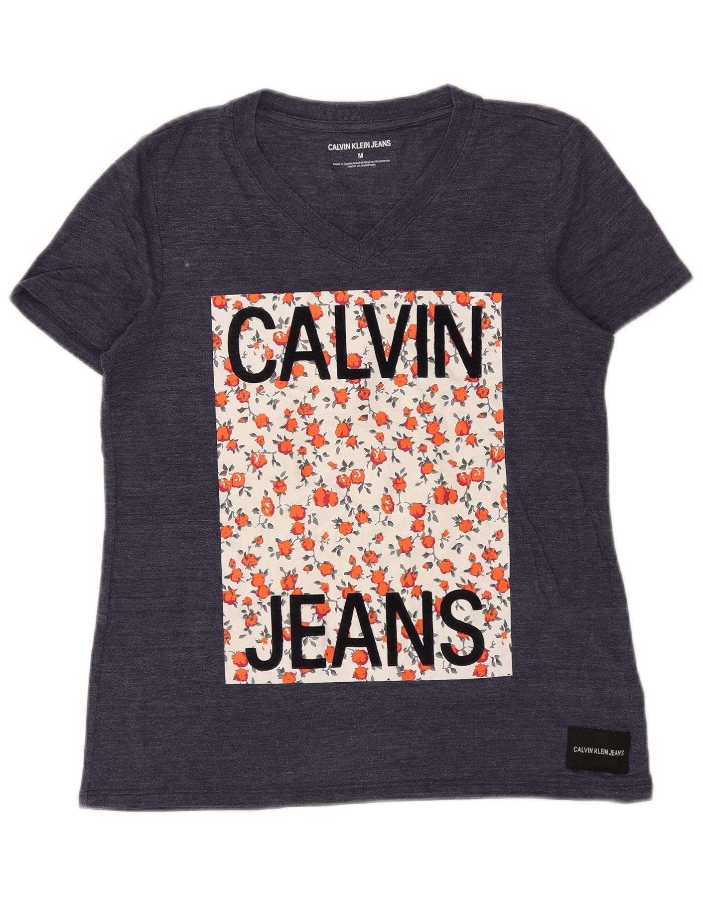 CALVIN KLEIN T-shirt grafica da donna Top UK 14 Medium Blu Navy Poliestere