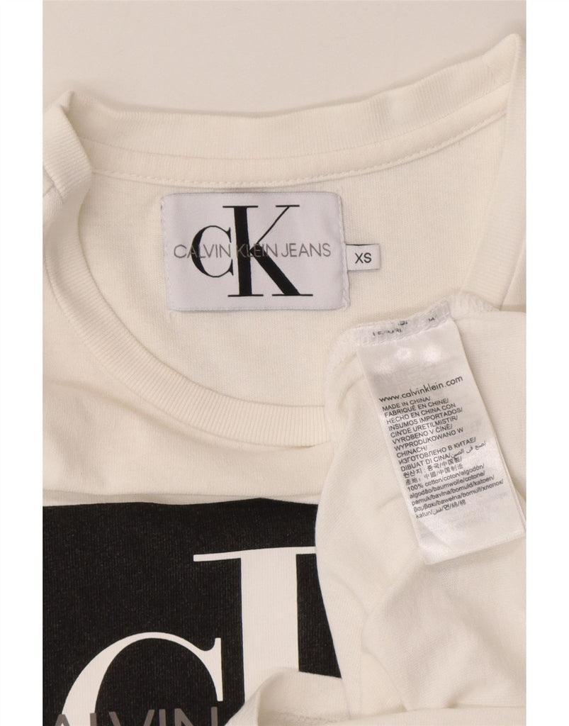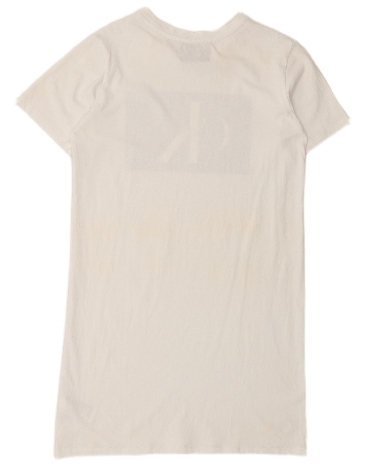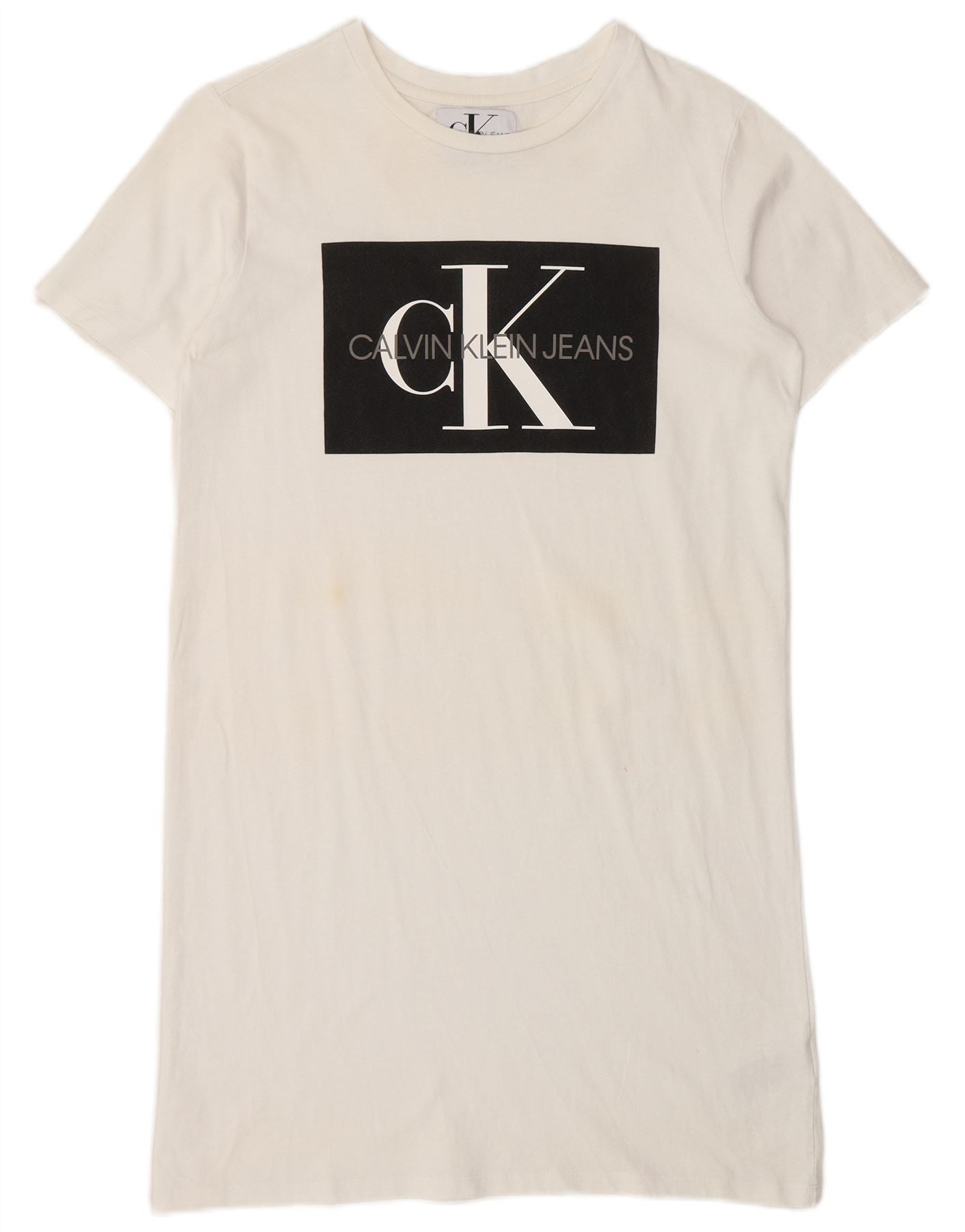 CALVIN KLEIN Womens Oversized Graphic T-Shirt Dress UK 6 XS White Cotton