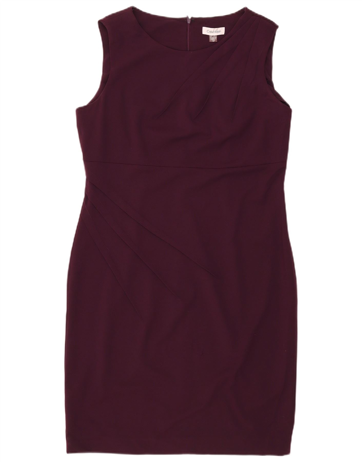 CALVIN KLEIN Abito tubino senza maniche da donna US 14 Large Bordeaux Poliestere