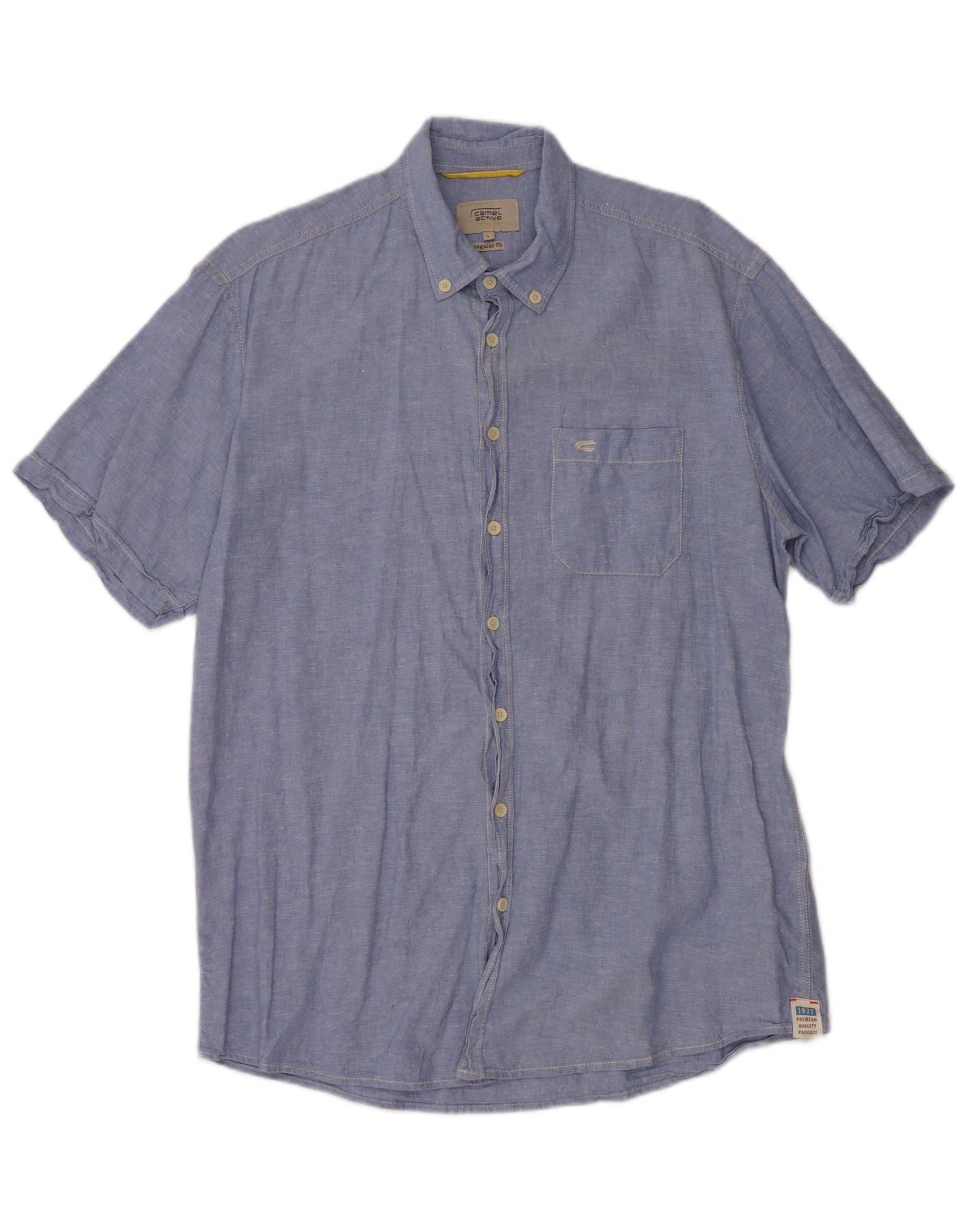 CAMEL ACTIVE Camicia da uomo a maniche corte, vestibilità regolare, grande lino chiazzato blu
