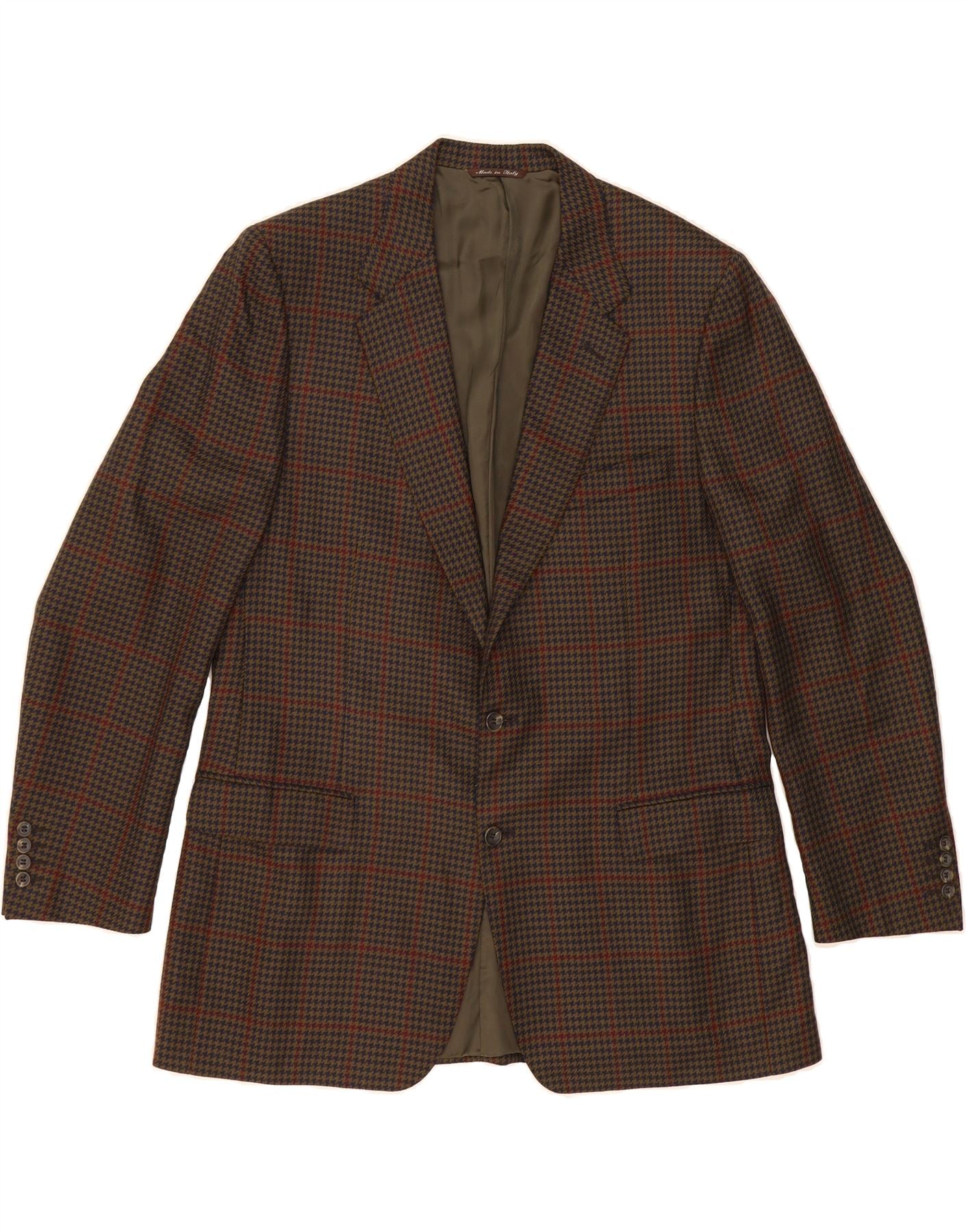 CANALI Mens 2 Button Blazer Jacket UK 40 Large Brown Houndstooth Wool