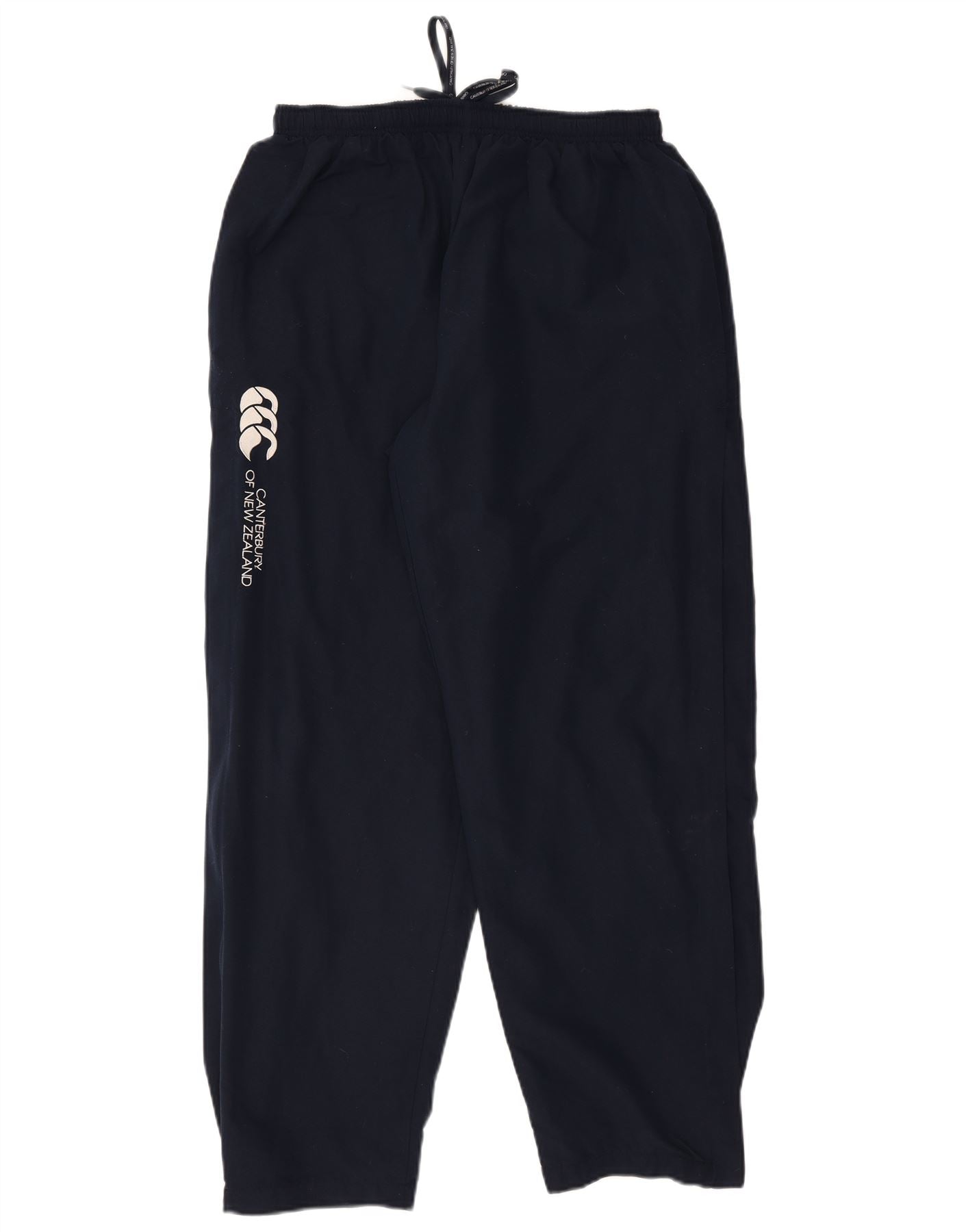 - AI Description: This Canterbury Of New Zealand mens tracksuit trousers joggers are crafted from durable navy blue woven polyester. They feature a comfortable regular fit with an elasticated and adjustable waist, ensuring a secure pull-on closure. The jogger style offers excellent ease of movement. Practical pockets are included for convenience. A subtle brand logo provides a signature accent. These trousers are ideal for sports, especially rugby, or relaxed casual wear.