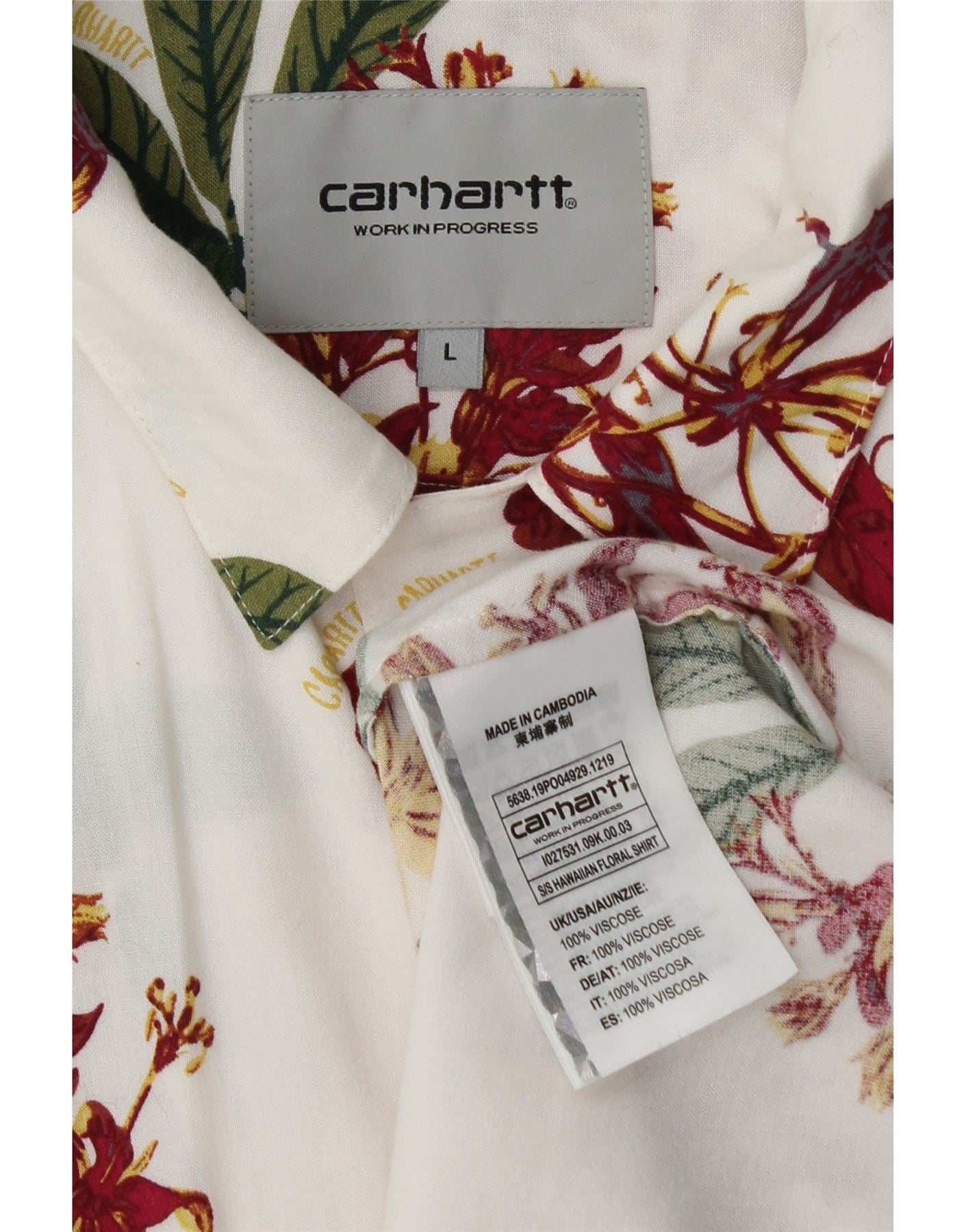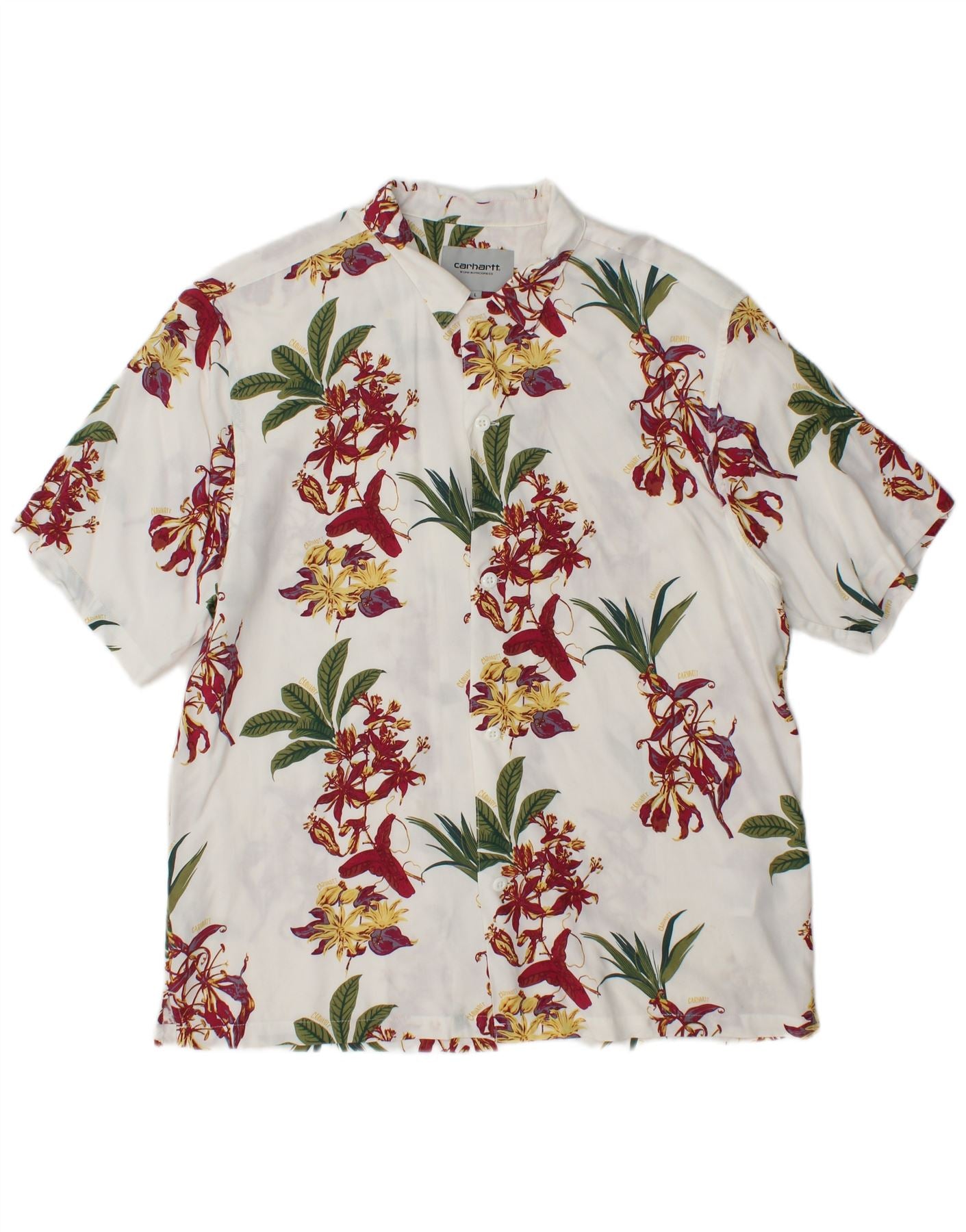 CARHARTT Camicia hawaiana a maniche corte da uomo in viscosa floreale bianca grande