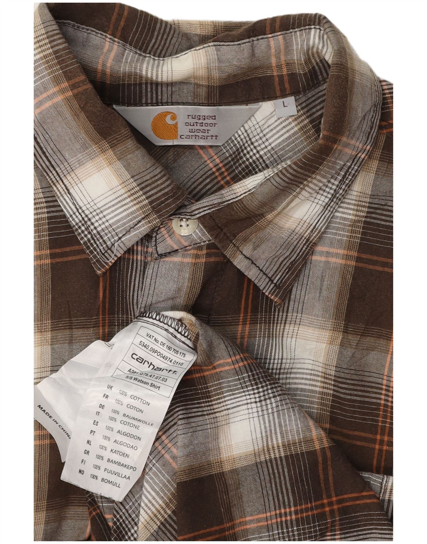 Home > Abbigliamento Carhartt vintage > Uomo > CARHARTT Camicia a maniche corte da uomo in cotone a quadri marroni grandi