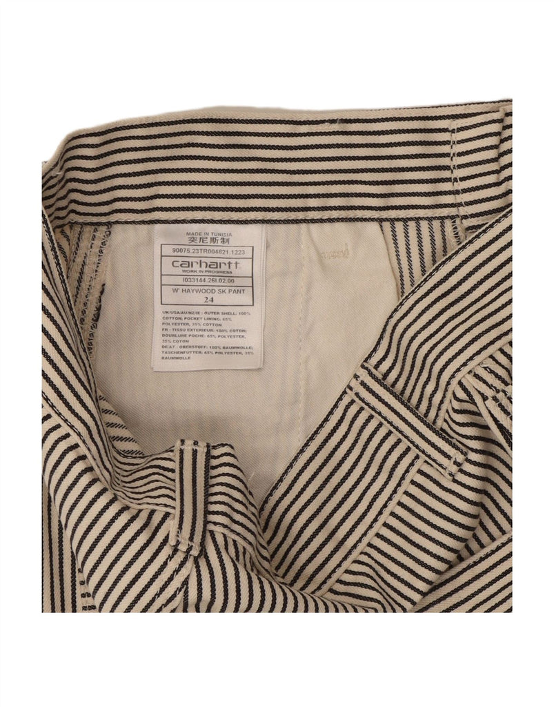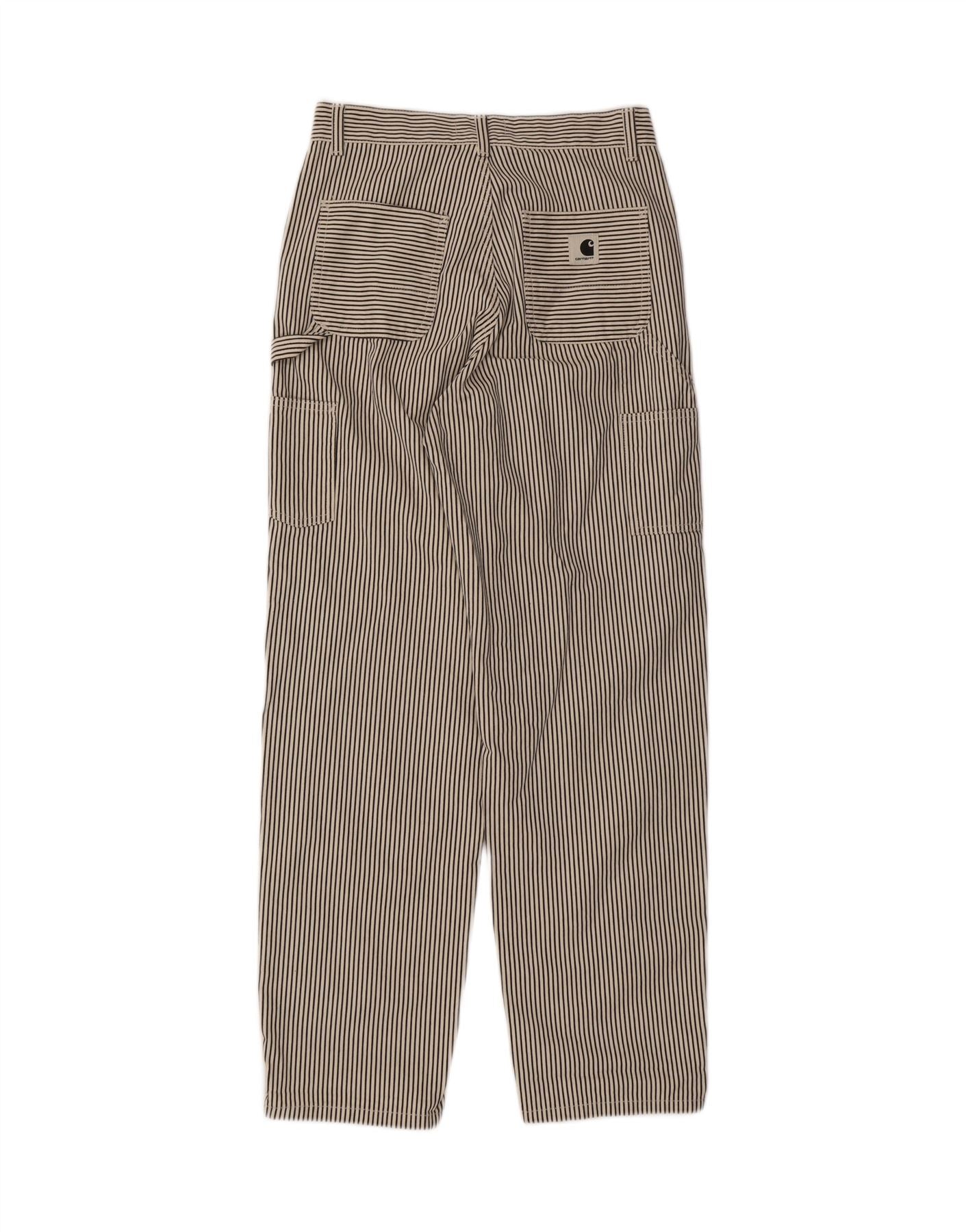 CARHARTT Womens Tapered Cargo Trousers W24 L29 Black Pinstripe Cotton