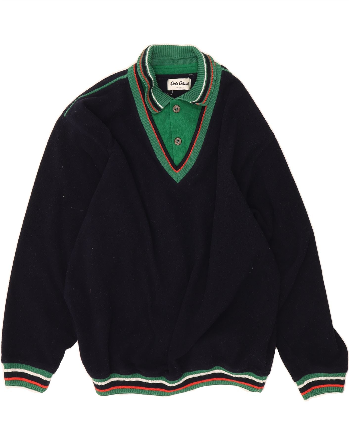 CARLO COLUCCI Mens Fleece Jumper Medium Navy Blue Polyester