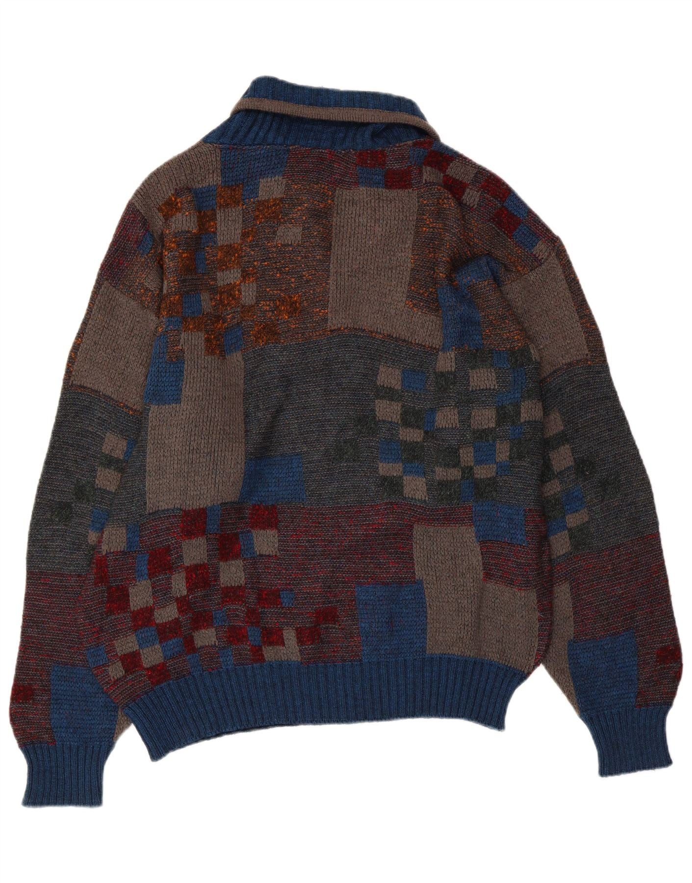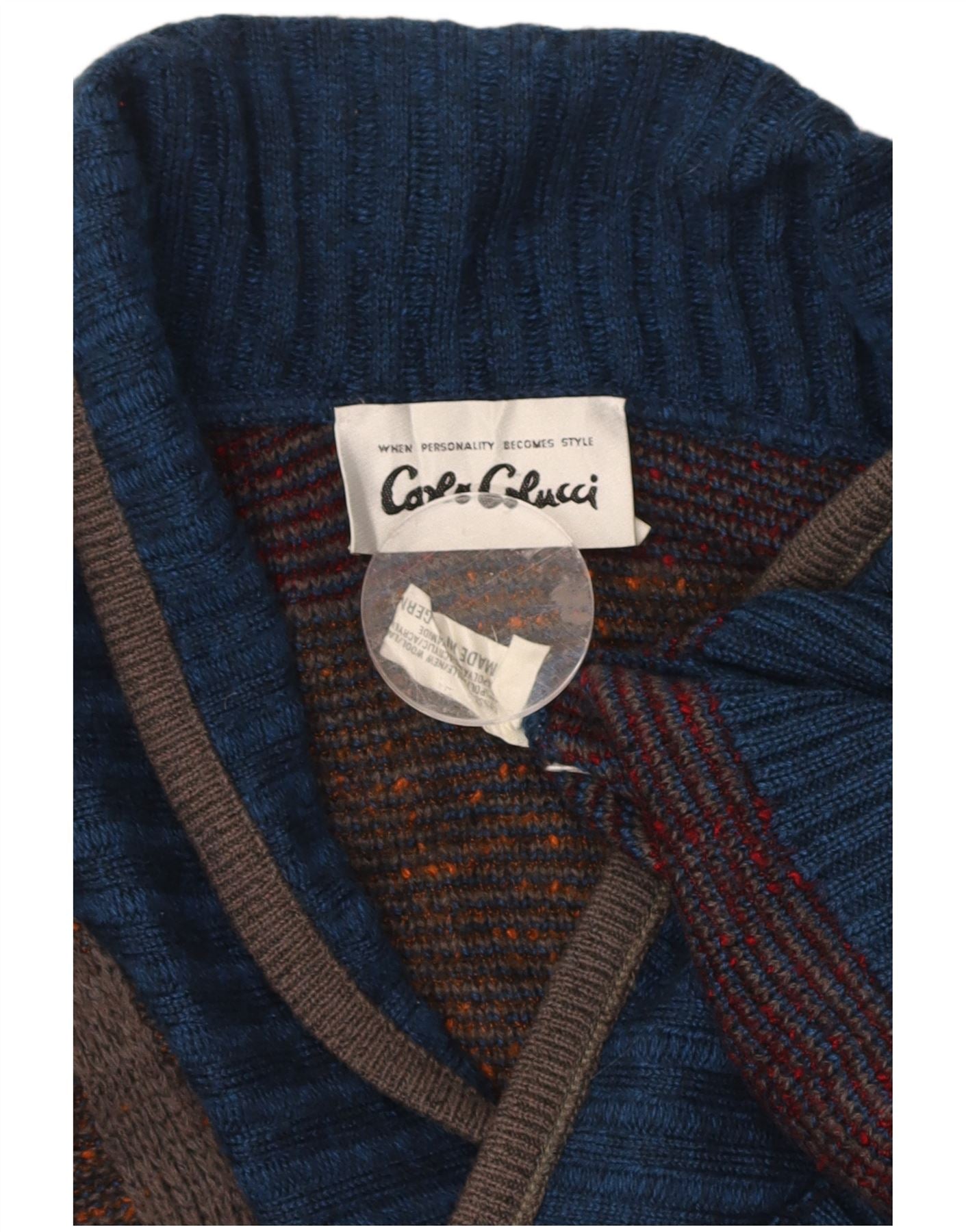 CARLO COLUCCI Mens Shawl Neck Jumper Sweater XL Multicoloured Geometric