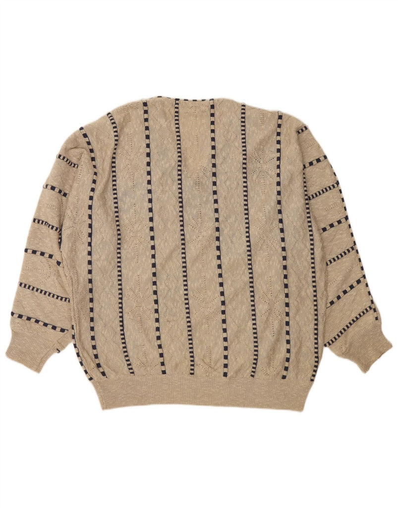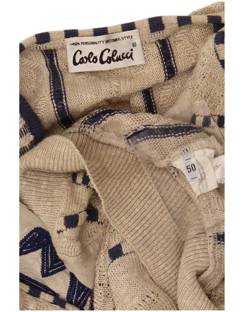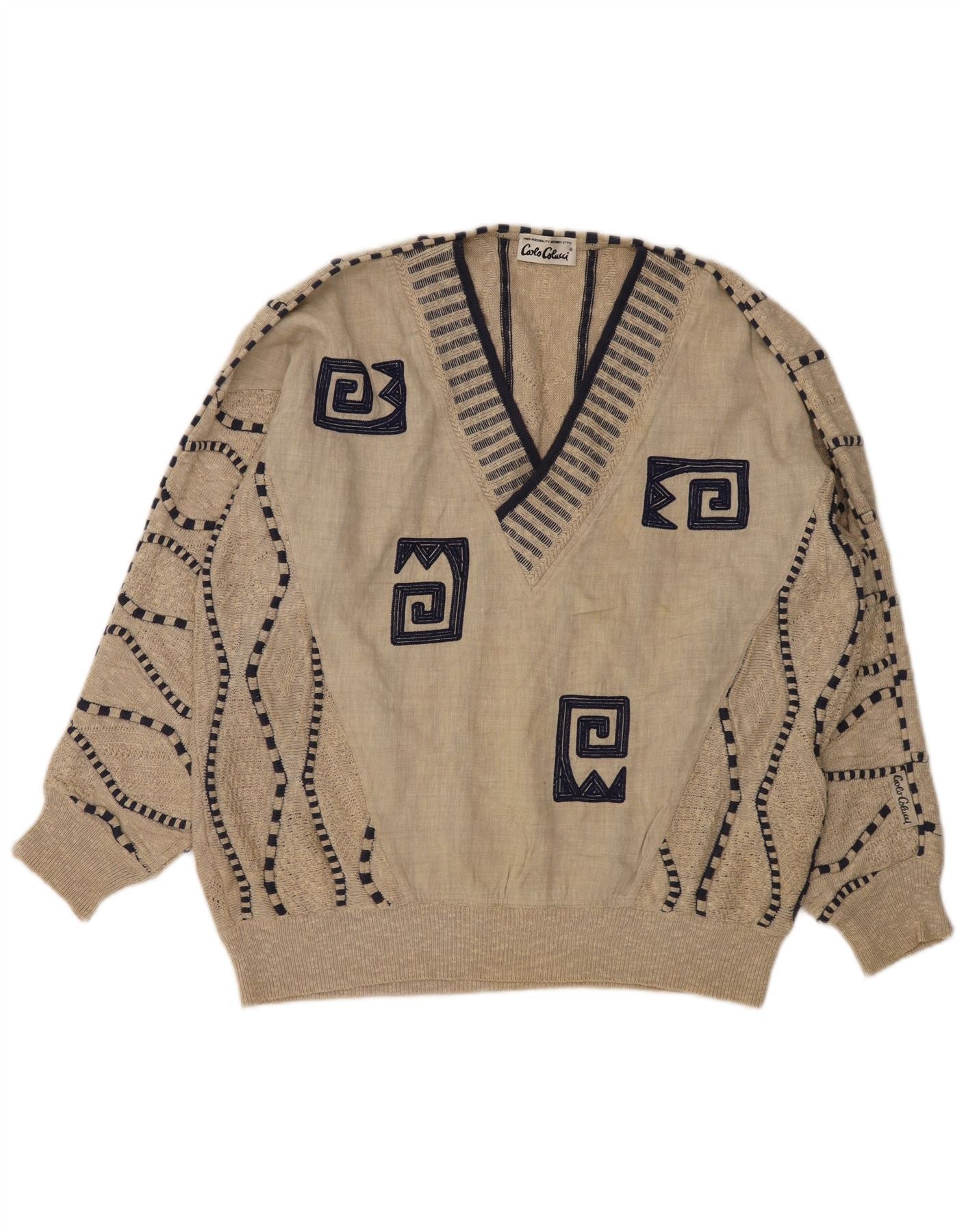 CARLO COLUCCI Mens V-Neck Jumper Sweater IT 50 Medium Beige Geometric