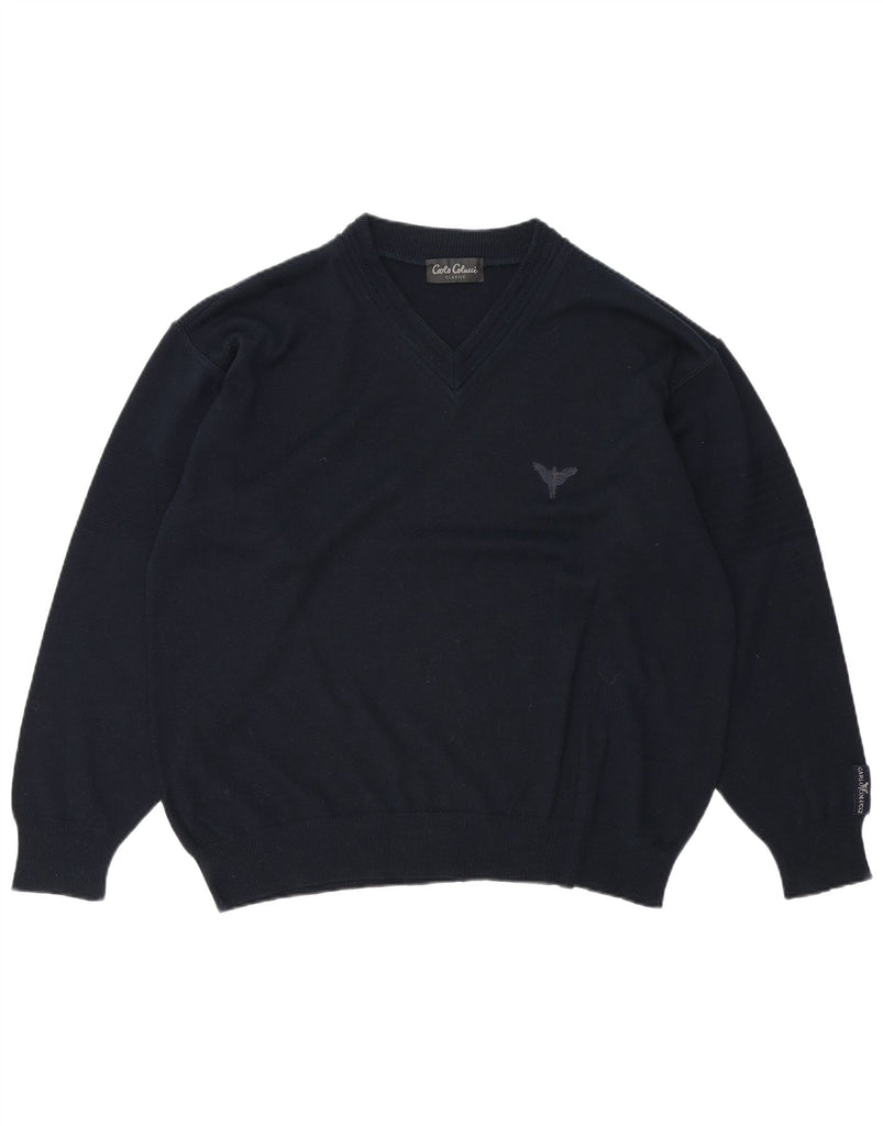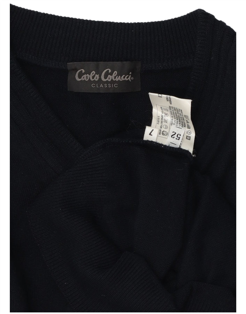 CARLO COLUCCI Mens V-Neck Jumper Sweater IT 52 Large Navy Blue Polyacrylic