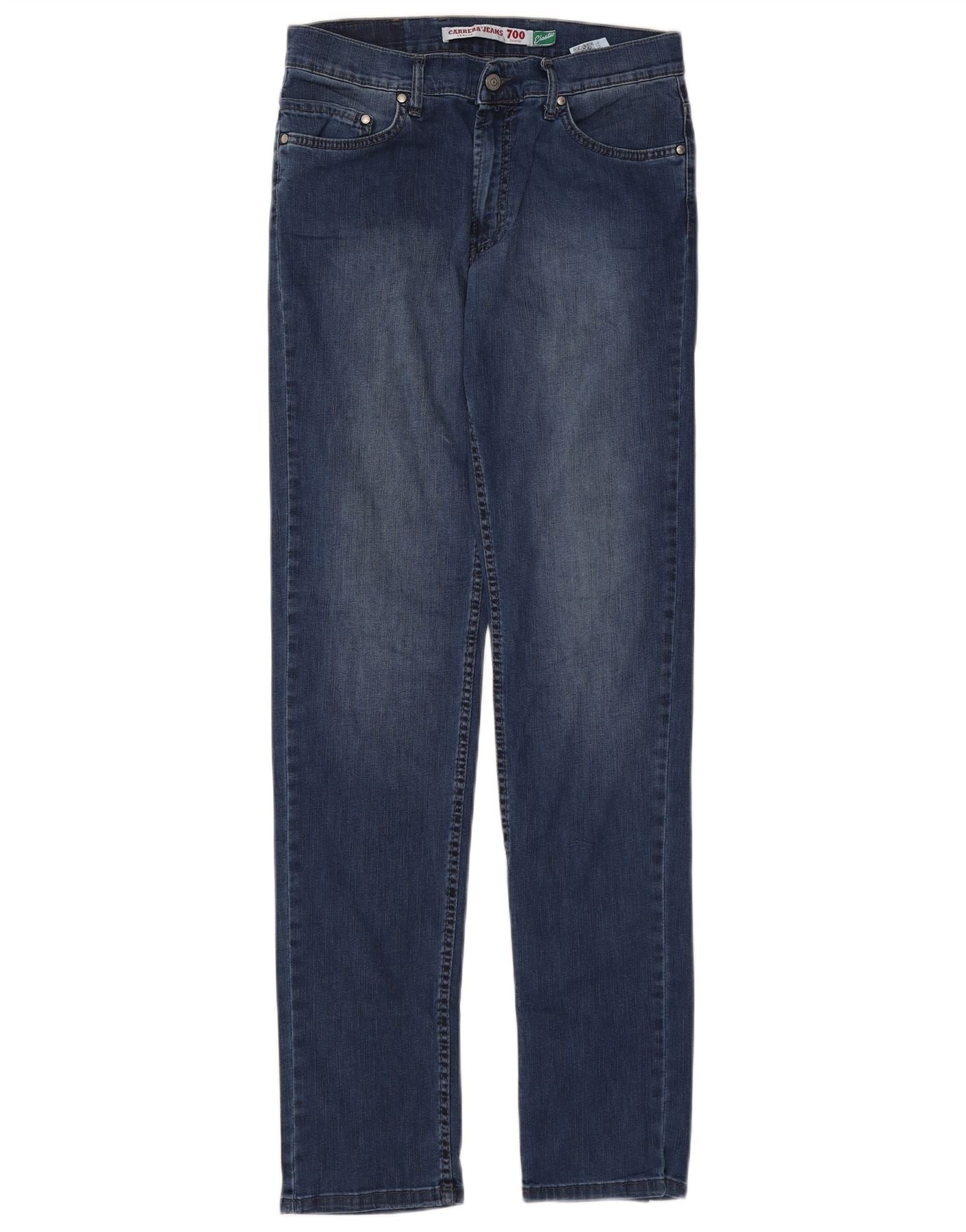 - AI Description: These Carrera mens straight jeans are crafted from blue stretch denim, offering both comfort and durability. They feature a classic button closure and a regular fit through the leg. The straight cut provides a timeless silhouette. Practical pockets are included, and a subtle logo detail adds brand recognition. This versatile pair is ideal for everyday wear.