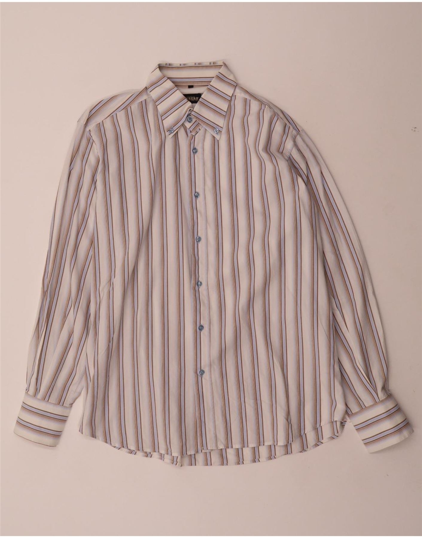 - Descrizione dell'IA: Questa camicia da uomo Carrera è realizzata in tessuto intrecciato in una tonalità bianco sporco. Presenta un classico motivo a righe con toni blu e marroni. Lo scollo con colletto e le maniche lunghe offrono una silhouette tradizionale. L'abbottonatura frontale e i polsini con bottoni completano il design. Questa camicia offre una vestibilità standard e classica, perfetta per un look raffinato.