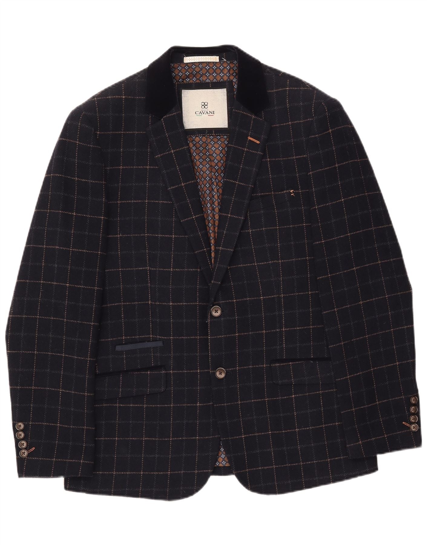 Abito da uomo Cavani a 2 bottoni in 2 pezzi UK 40 Large W38 L32 blu navy a quadri