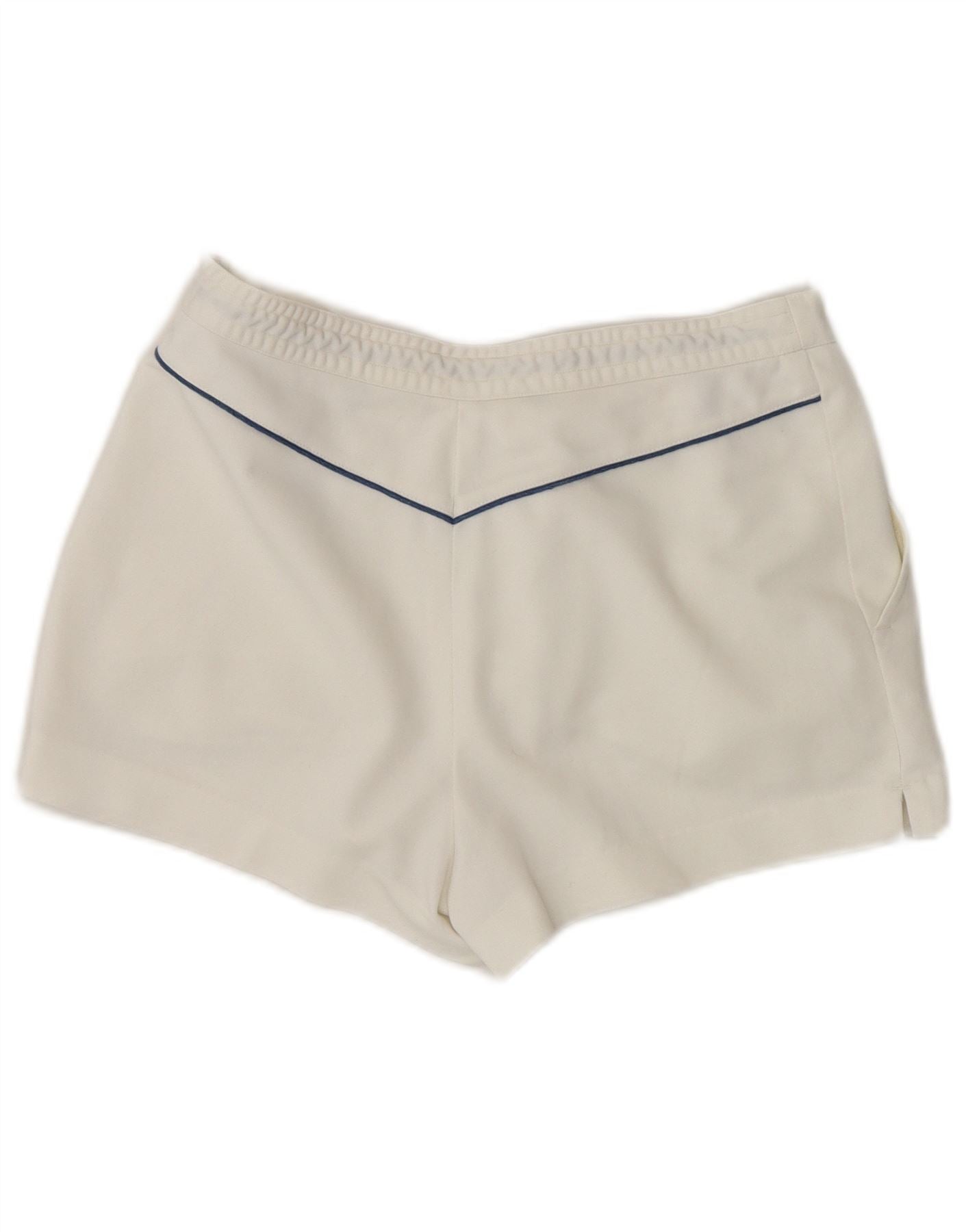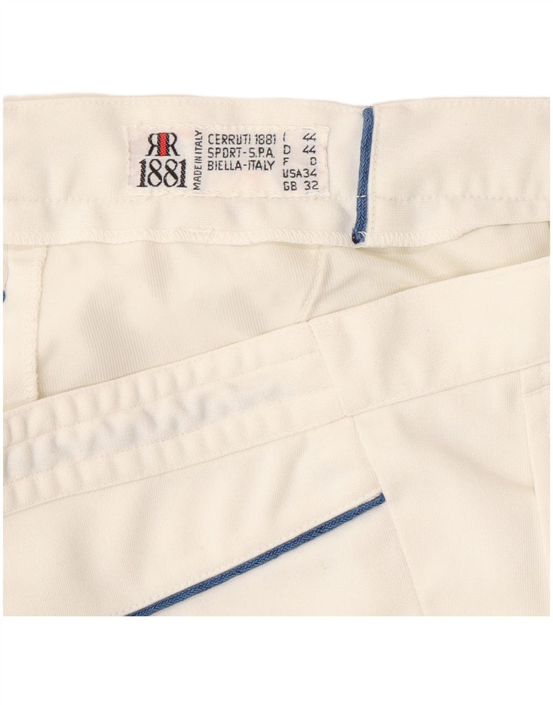 - AI Description: These Cerruti 1881 womens casual shorts are crafted from a crisp off white woven fabric. They feature a regular fit for comfortable wear. A button closure secures the waist. Practical pockets are included. A subtle logo accent adds a signature touch. This design offers a clean, versatile look for everyday styling.