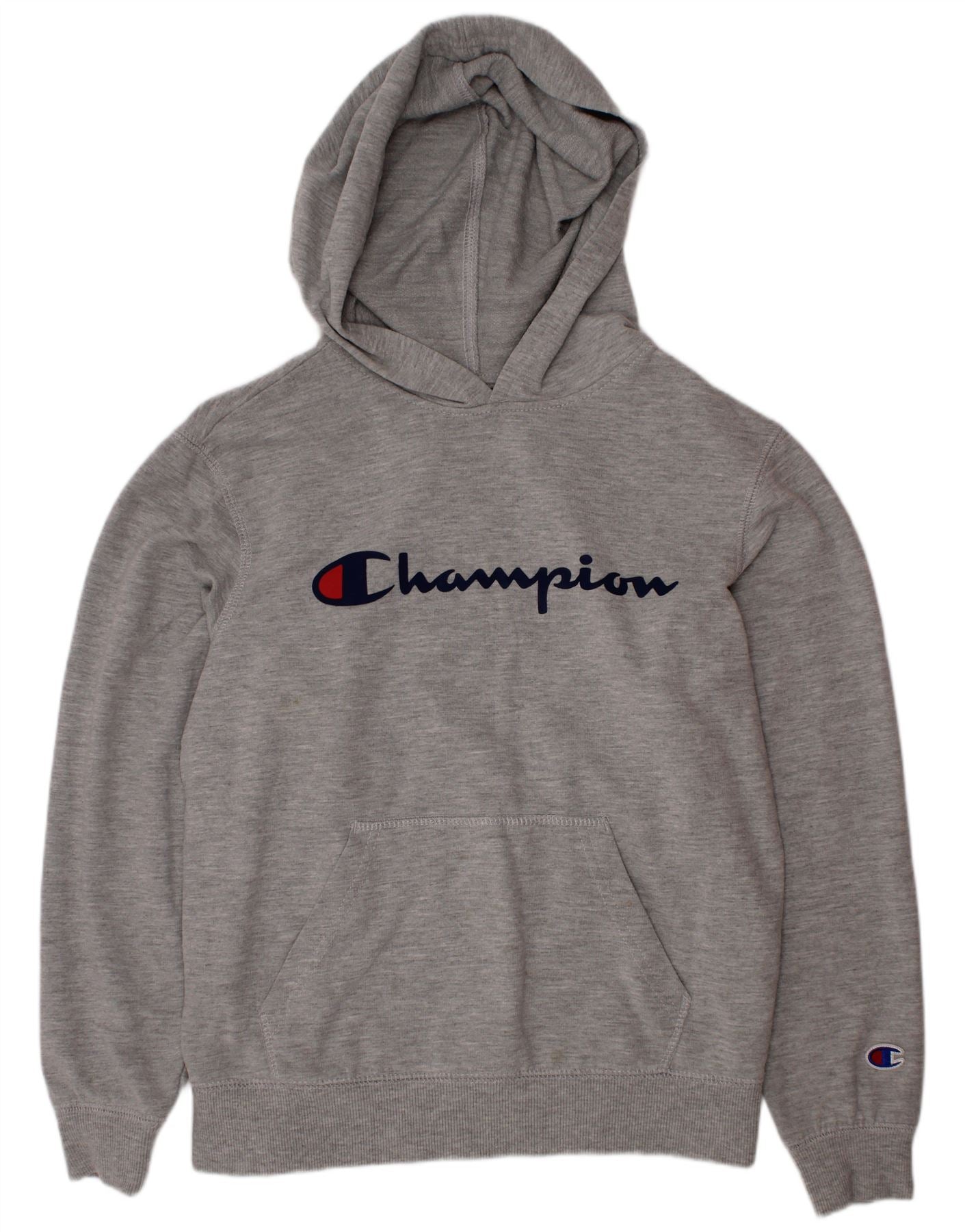 Maglione con cappuccio grafico per ragazzi CHAMPION 9-10 anni in cotone screziato grigio medio
