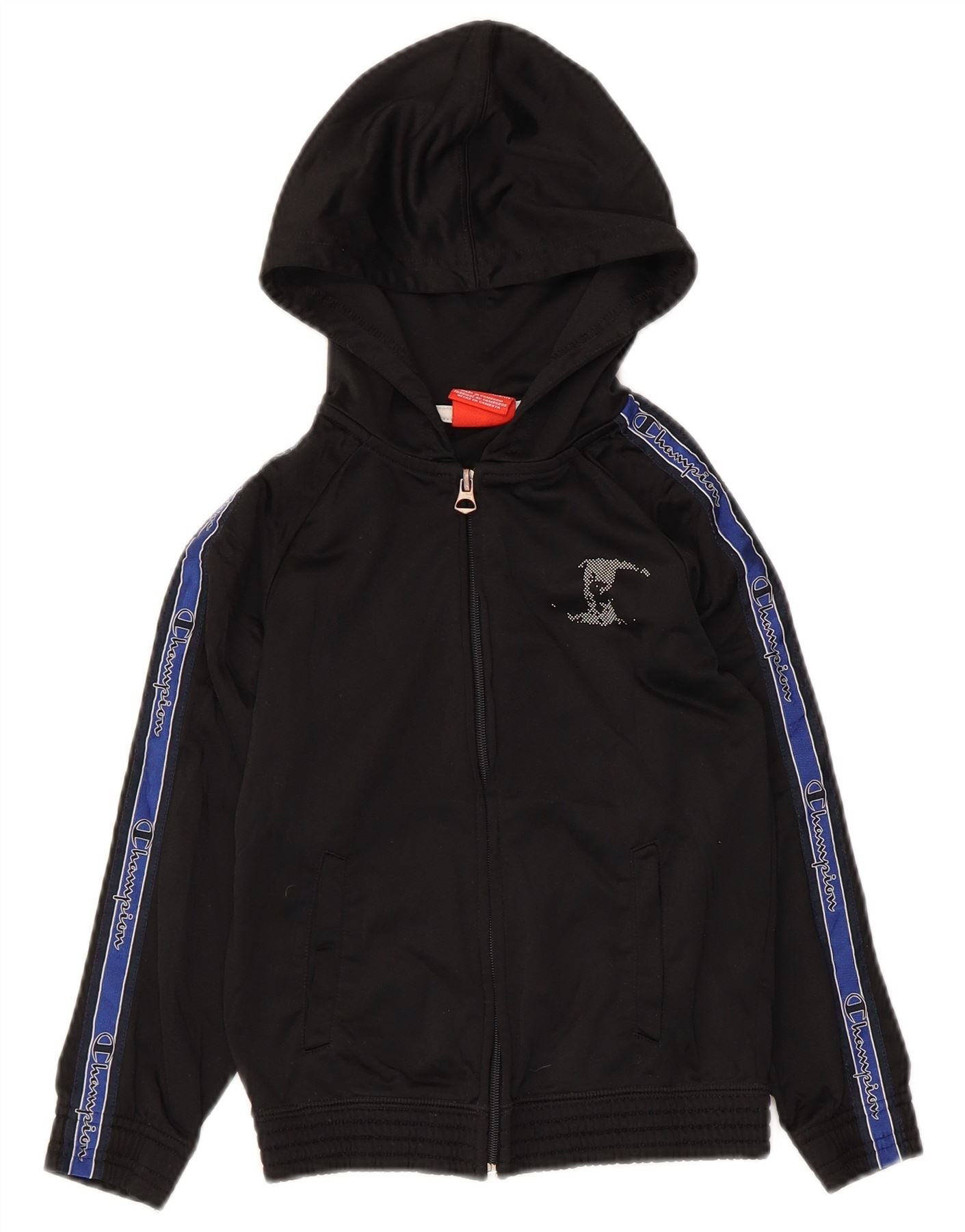 CHAMPION Boys Graphic Zip Hoodie Sweater 5-6 Years XS Black Colourblock