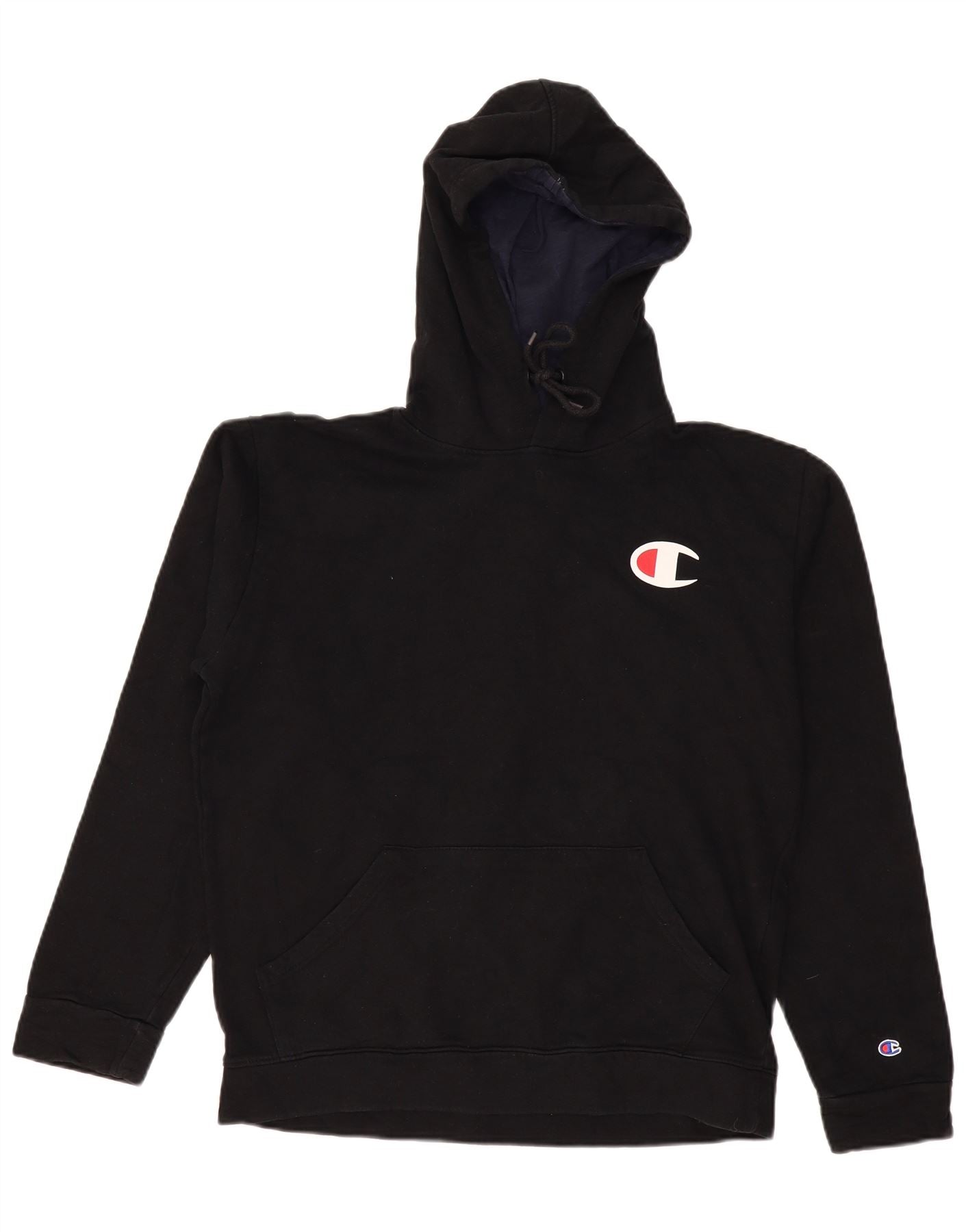 Home > Abbigliamento da campione vintage > Uomo > Felpa > Maglione con cappuccio grafico da uomo CHAMPION grande in cotone nero