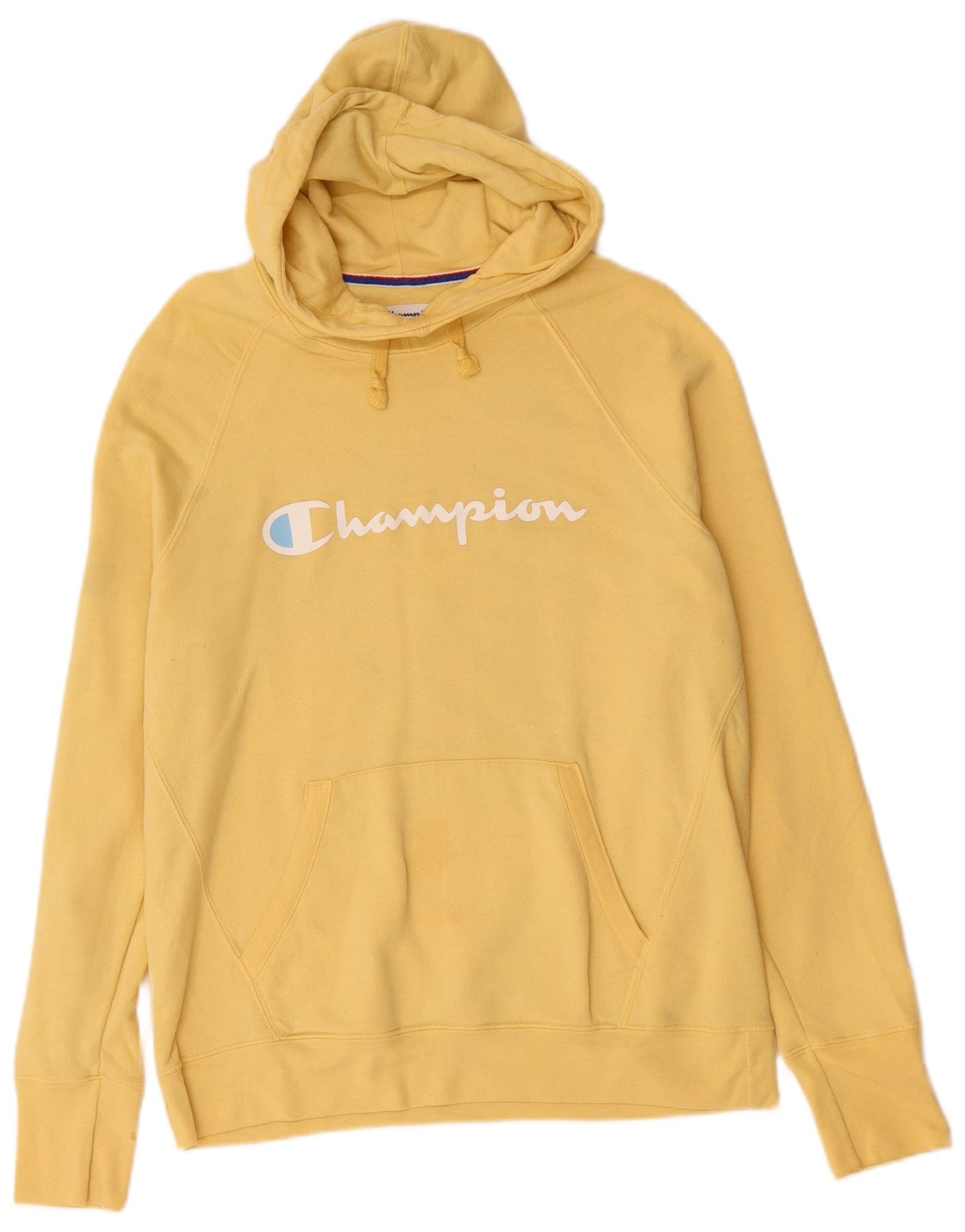 Home > Abbigliamento da campione vintage > Uomo > Felpa > Felpa con cappuccio grafica da uomo Champion, grande, in poliestere giallo