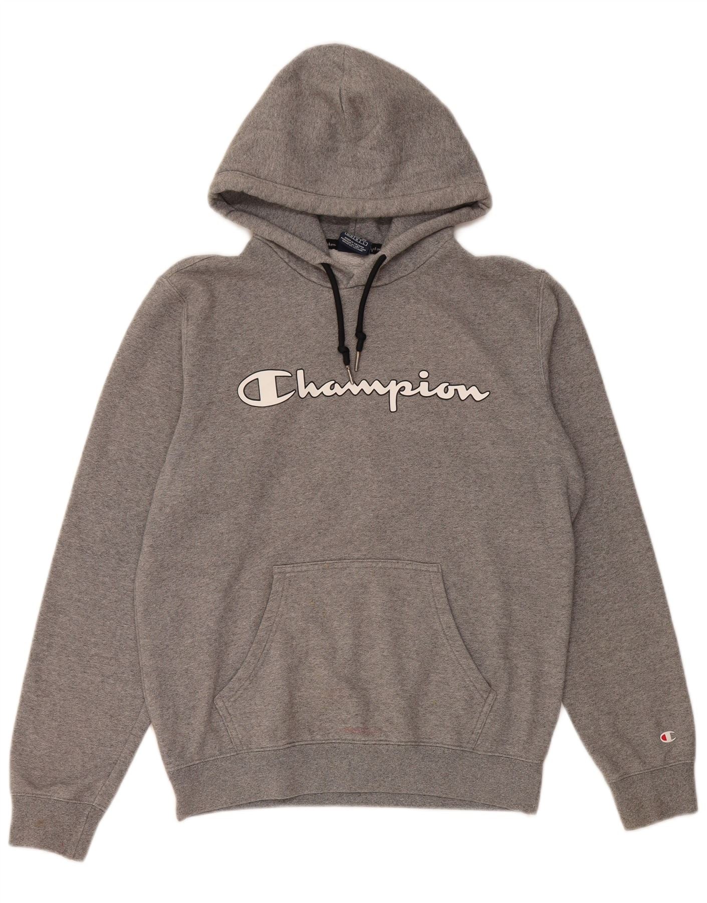 Home > Abbigliamento da campione vintage > Uomo > Felpa > Maglione con cappuccio grafico da uomo Champion in cotone chiazzato grigio medio