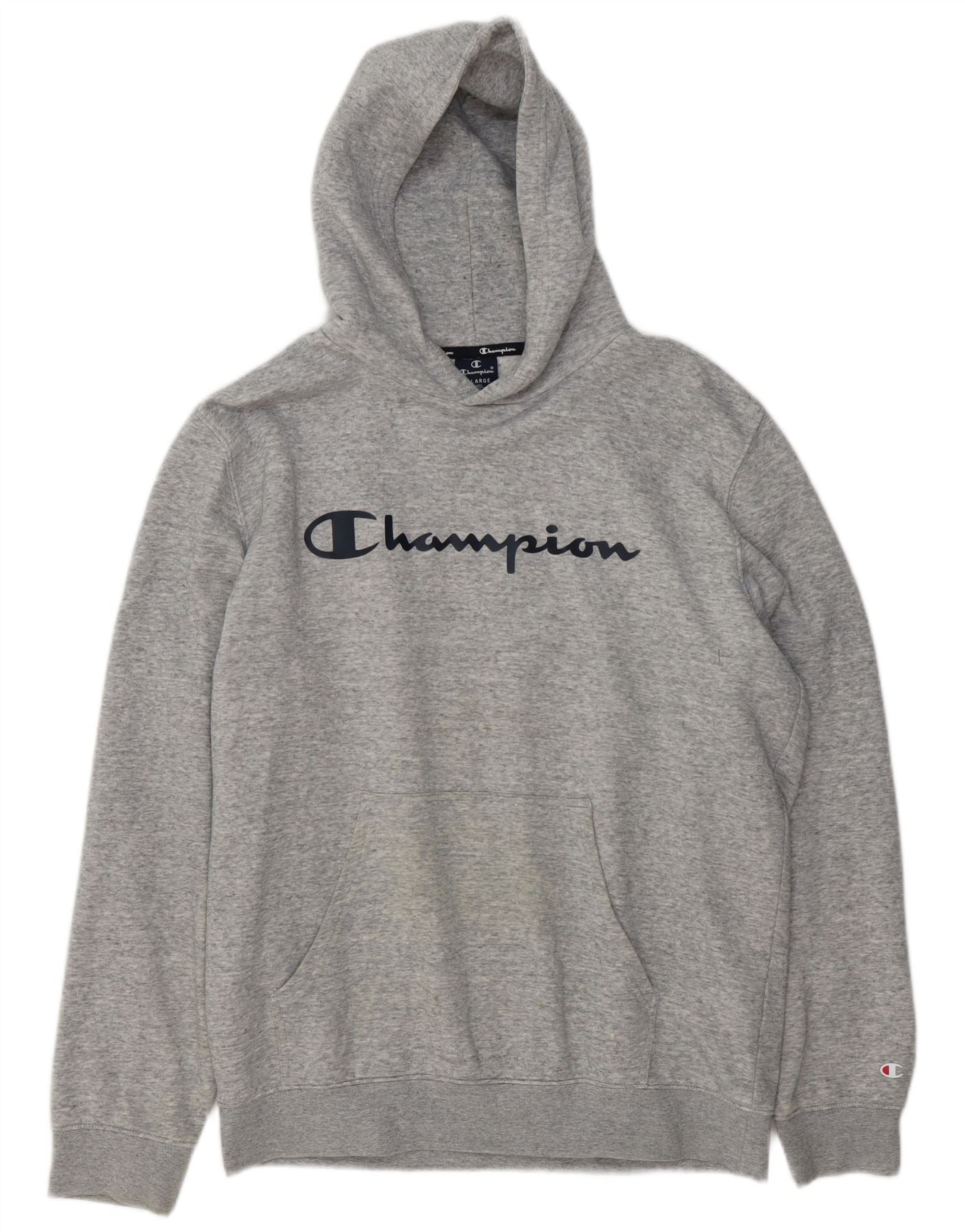 Home > Abbigliamento da campione vintage > Uomo > Felpa > Maglione con cappuccio grafico da uomo CHAMPION XL in cotone chiazzato grigio