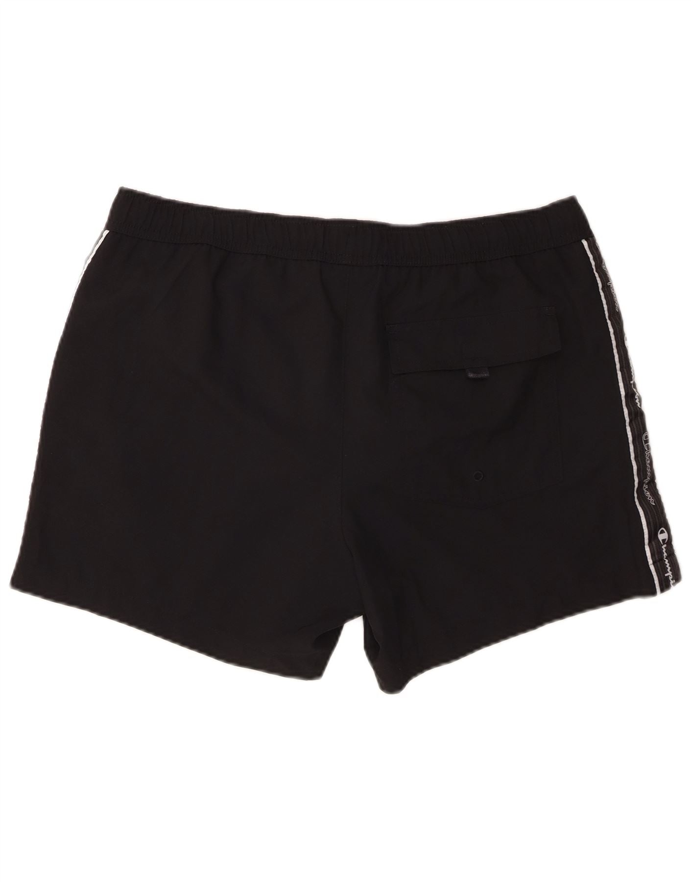 - Descrizione dell'IA: Questi pantaloncini da bagno da uomo Champion sono realizzati al 100% in poliestere tessuto nero per un comfort di asciugatura rapida. La vita elasticizzata è dotata di coulisse bianca per una vestibilità regolabile e sicura. La vestibilità regolare garantisce facilità di movimento. Le tasche laterali offrono un pratico spazio per riporre gli oggetti. Il nastro logo bianco corre lungo ciascun lato, aggiungendo un dettaglio atletico distintivo al design. I pantaloncini sono completamente foderati per maggiore comfort e copertura.