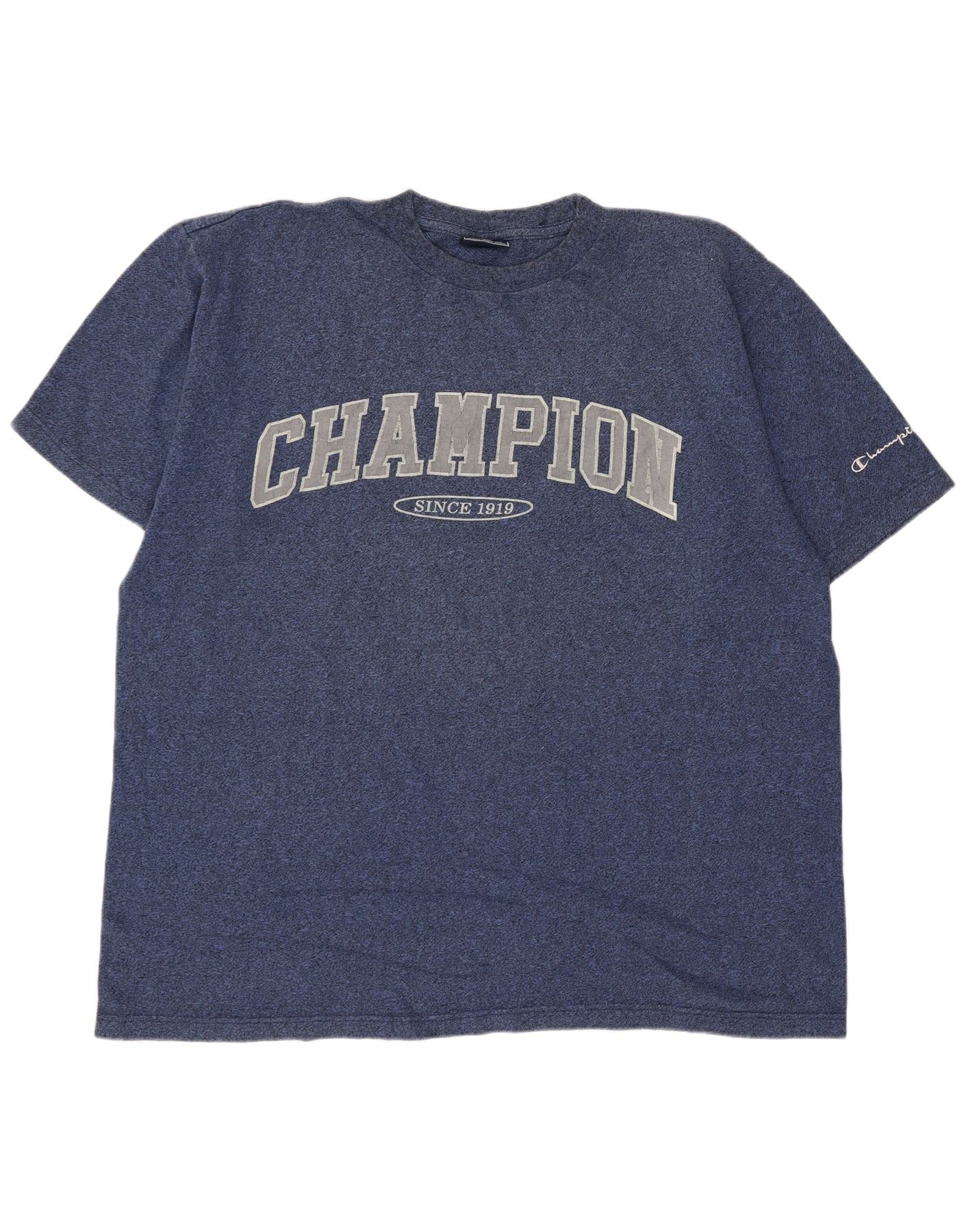 Home > Abbigliamento da campione vintage > Uomo > Magliette > T-shirt grafica da uomo Champion Top XL in cotone screziato blu navy