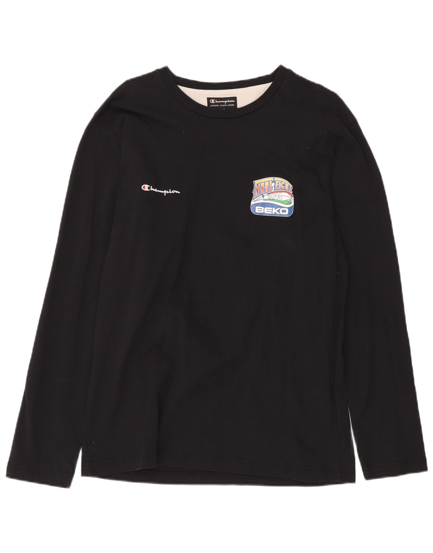 CHAMPION Top grafico da uomo a maniche lunghe in cotone nero grande