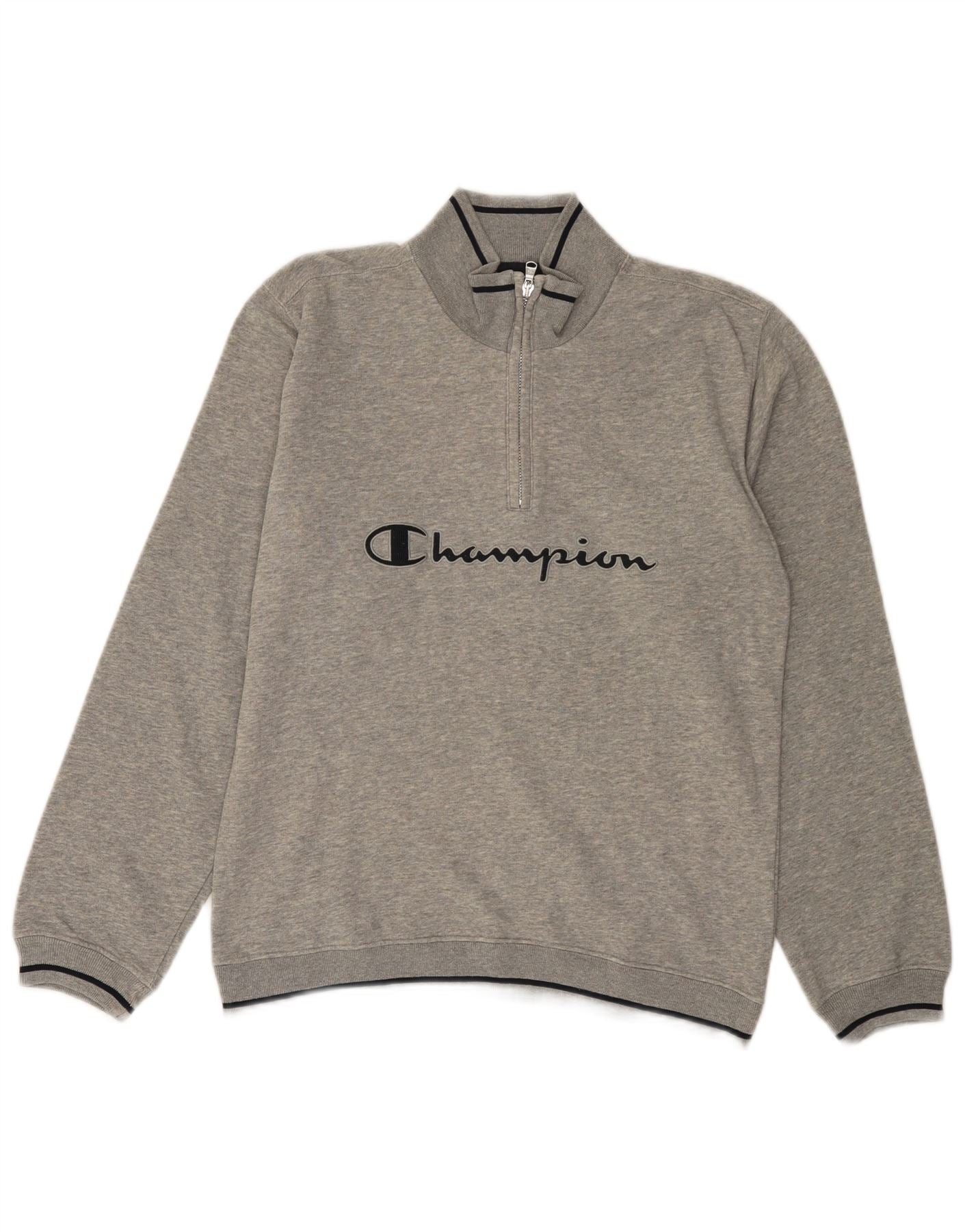 Home > Abbigliamento da campione vintage > Uomo > Felpe > CHAMPION Felpa con collo con zip grafica da uomo Maglione piccolo in cotone grigio